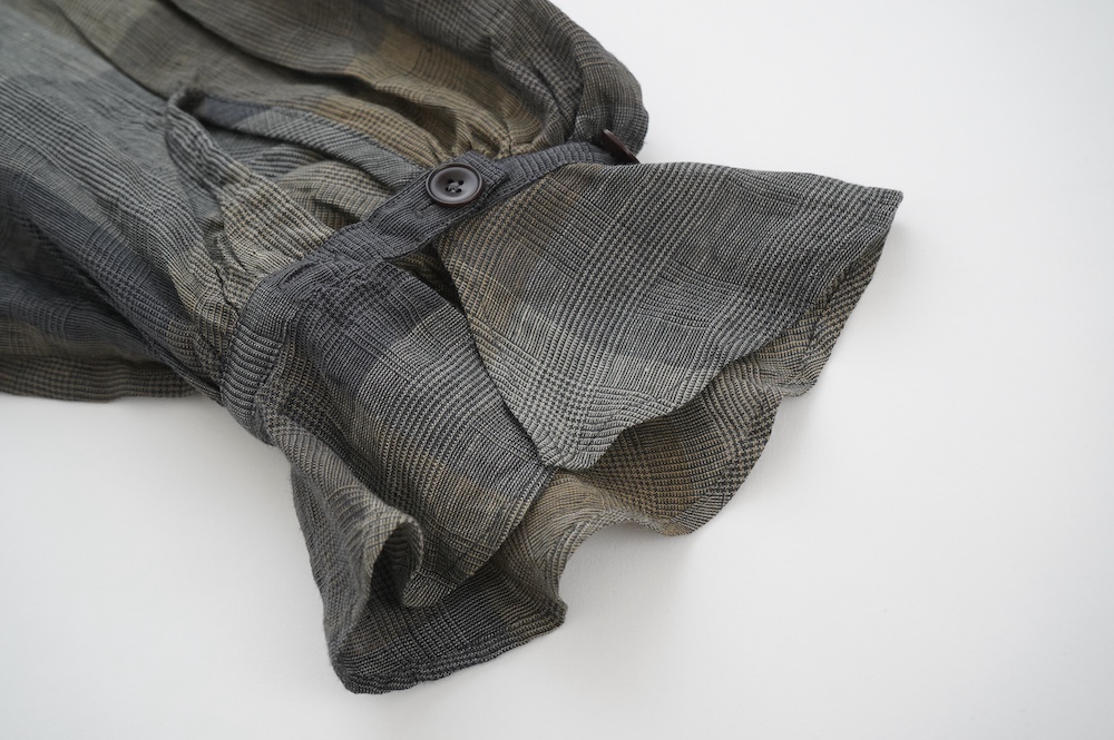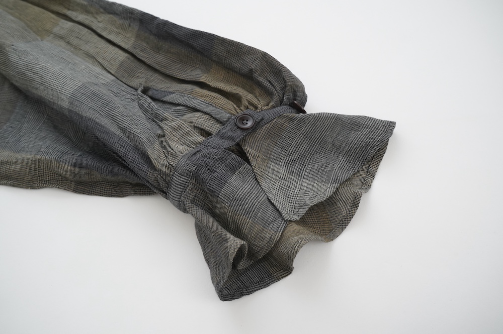 ボタンは半分くらいまで外したら着れるそうです。袖はタックとギャザーと袖口のフリルでGASAらしさが全開です。