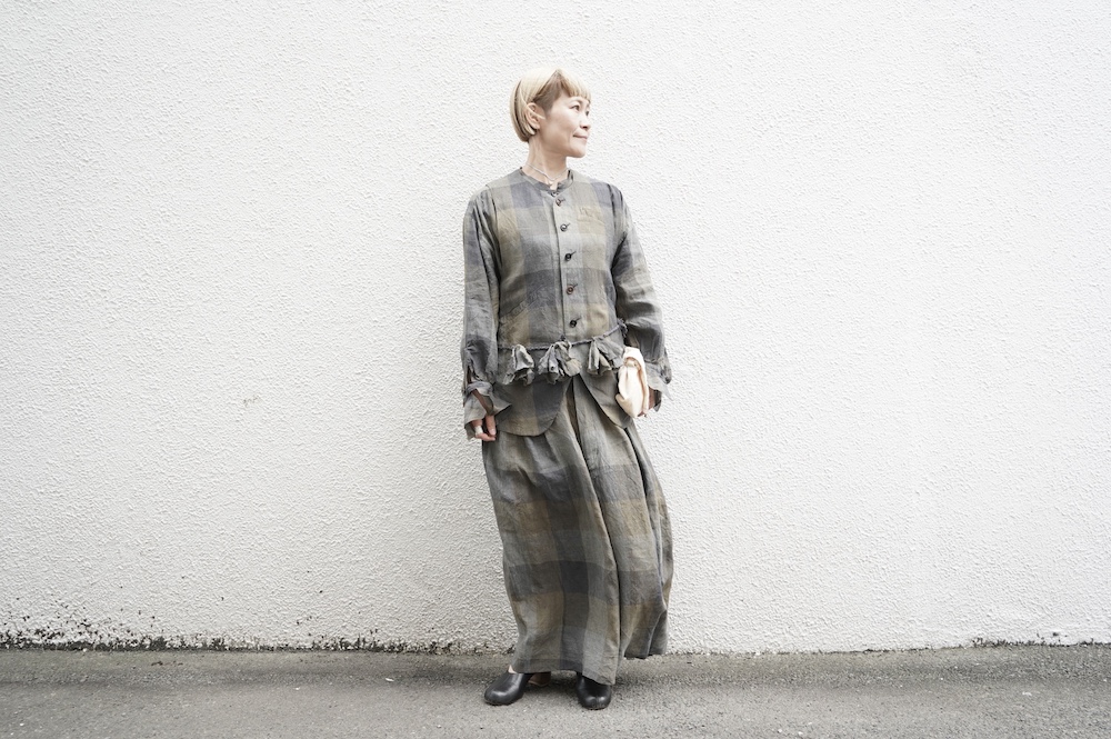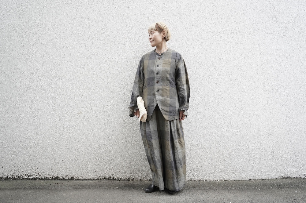 入荷したてのFACTORYのプリーツパンツに合わせて、インナーはSUSURIのオウルチュニック
