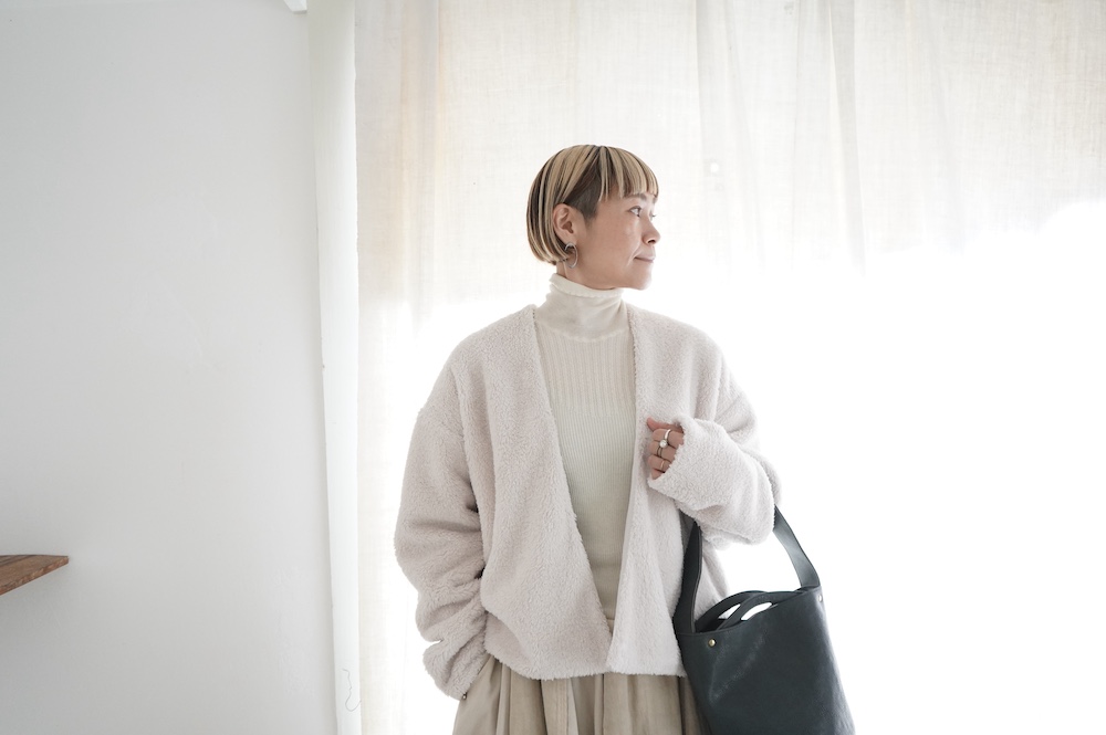 Honneteのカーディガンを重ねて