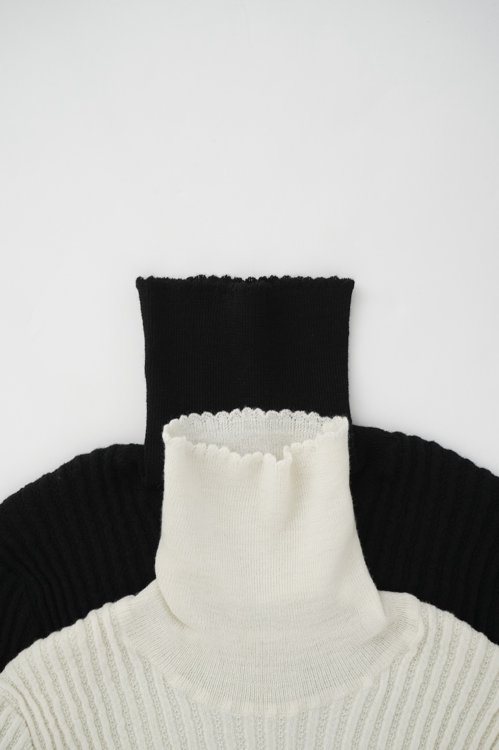 タートルのトップ部分のレース編みもさりげないデザインです。