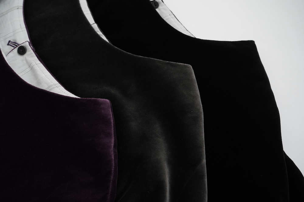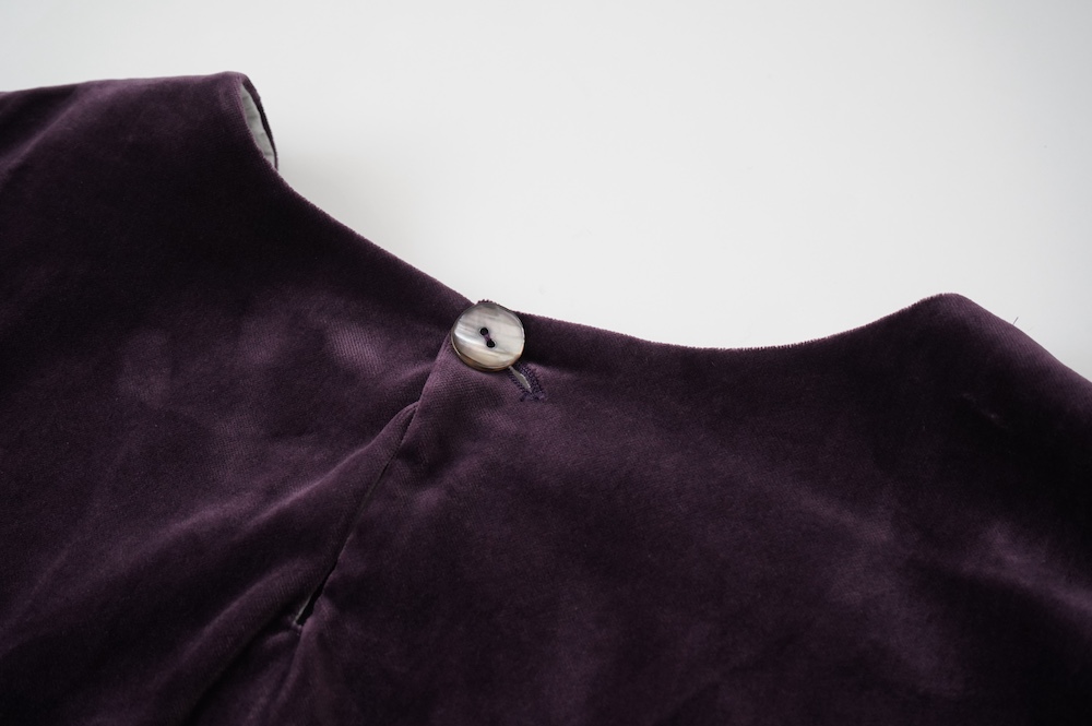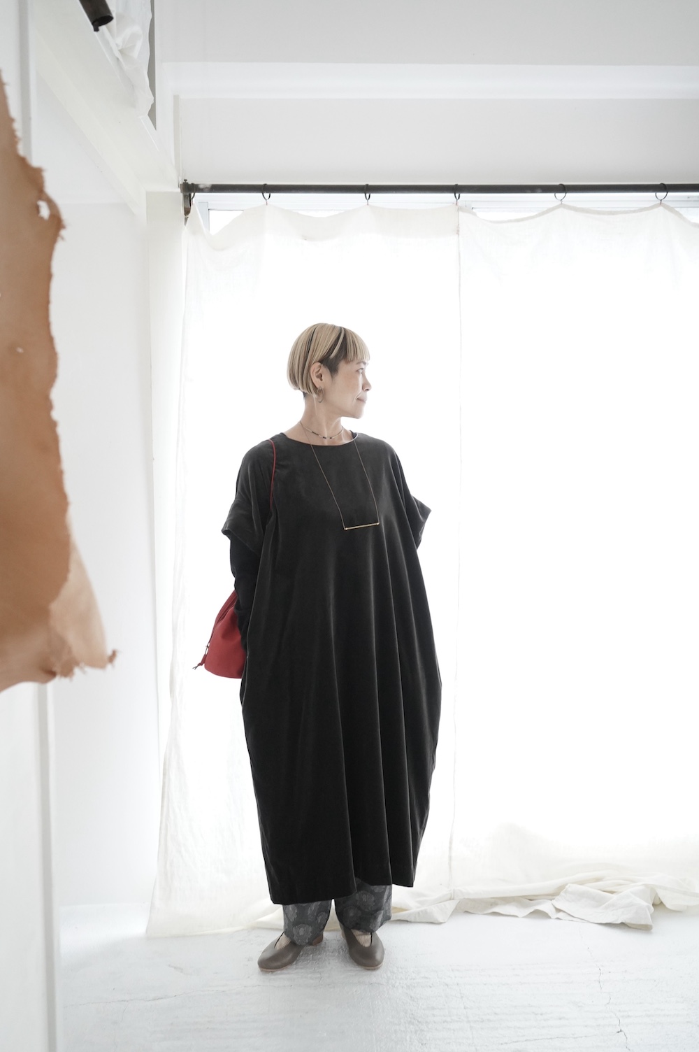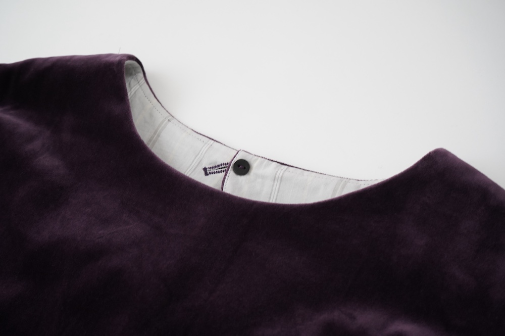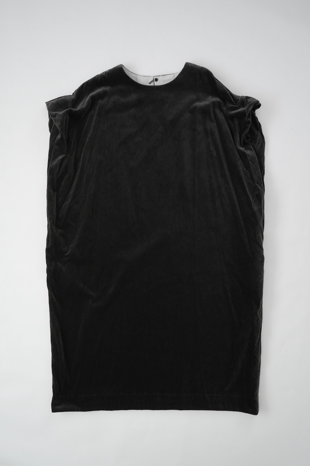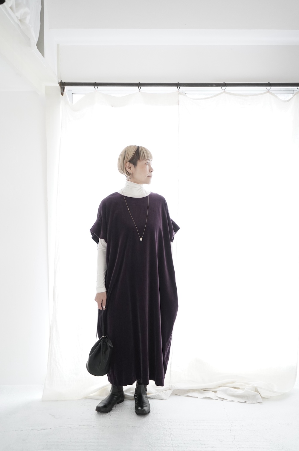 "GASA*"のドレス。ベルベットに洗い加工を施し、ワッシャー感のあるヴィンテージのような趣きを感じさせる素材です。上品な光沢感があり、カジュアルからフォーマルな装いにも着ていただける、華やかさがあります。レーヨン混で柔らかく、ゴワゴワ感のないベルベット生地です。