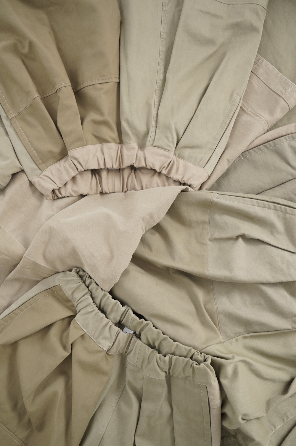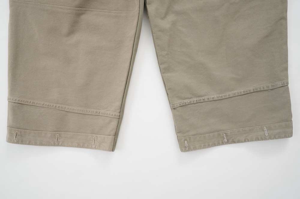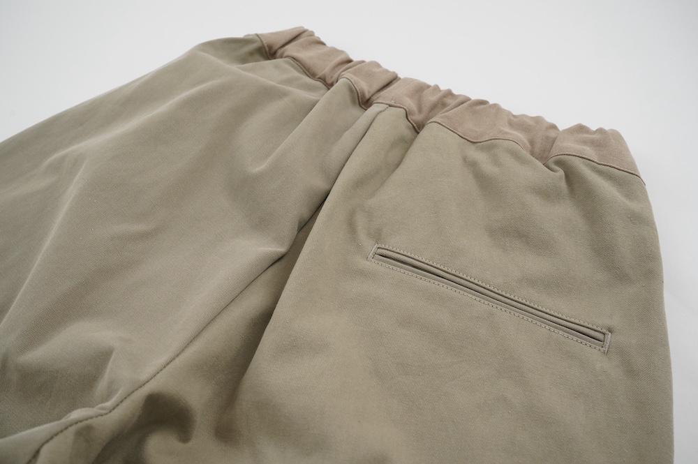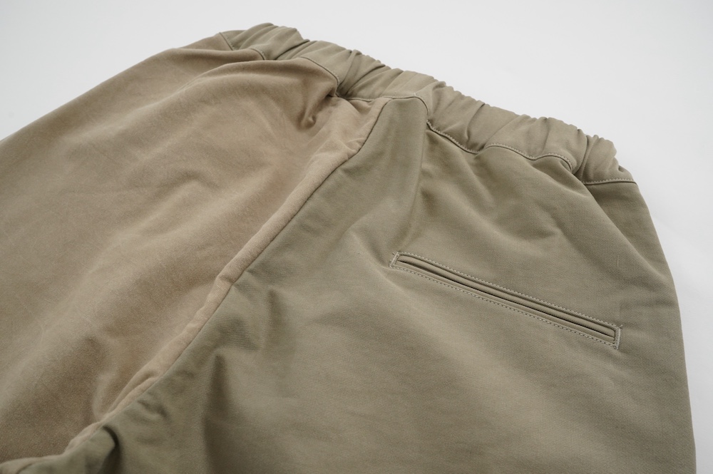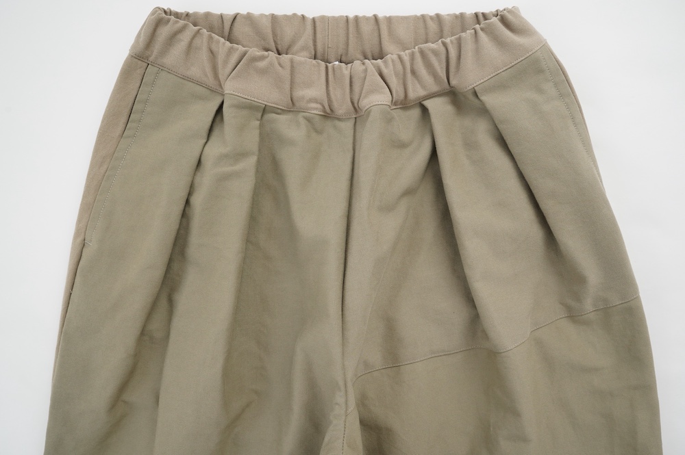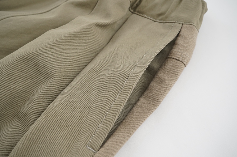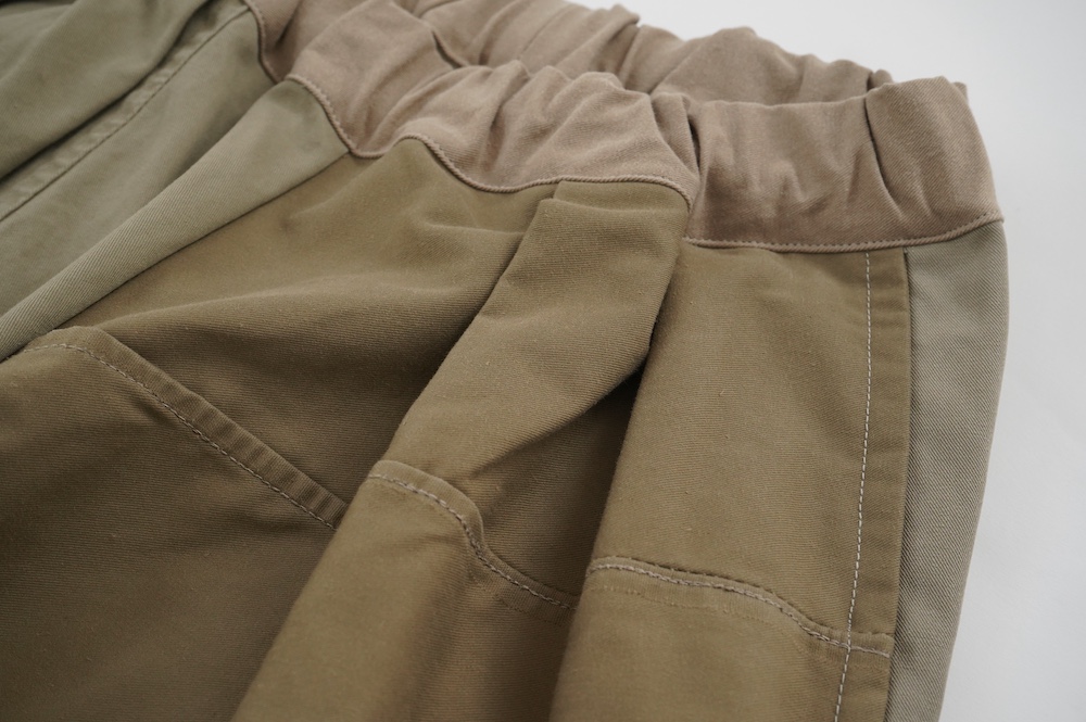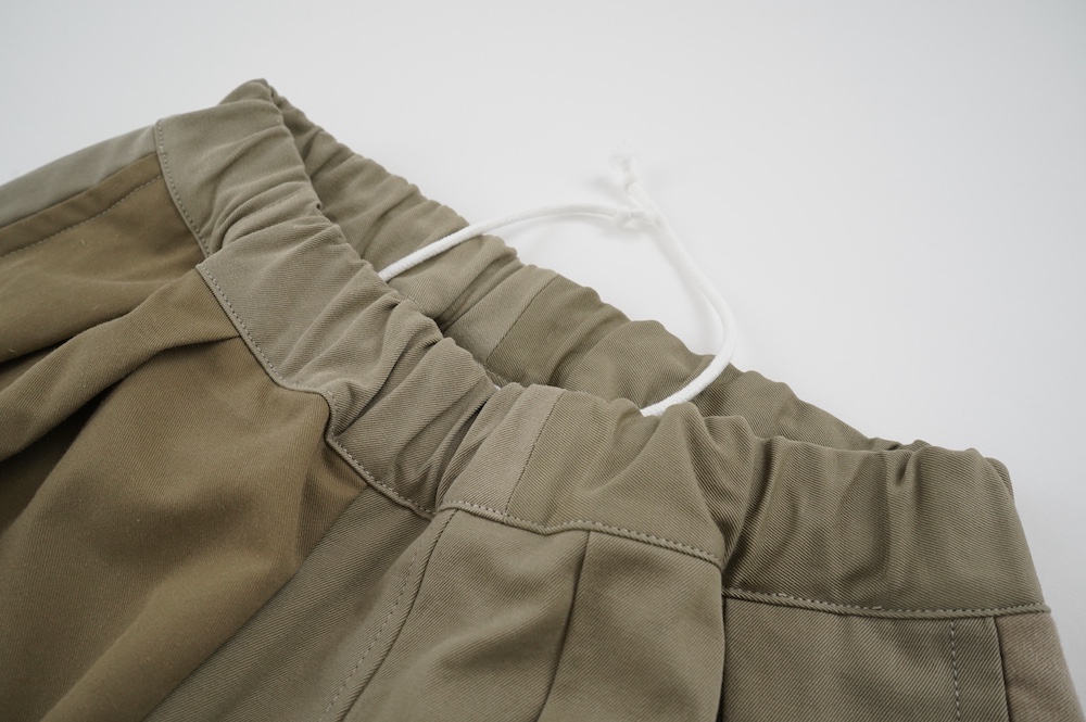 共通してウェストはゴムと紐で、両サイドにポケットがあります。