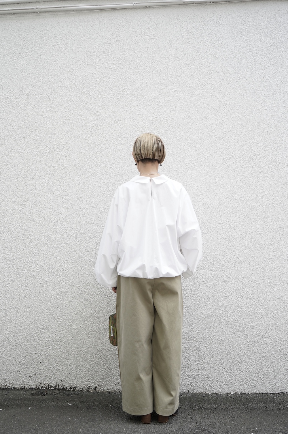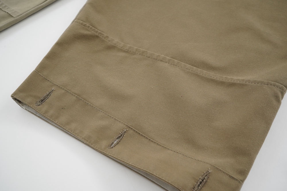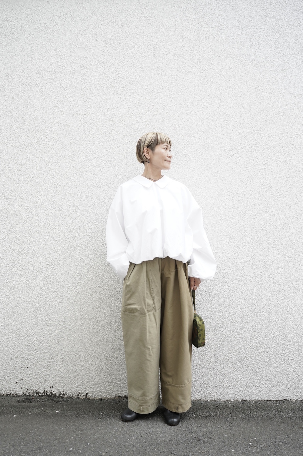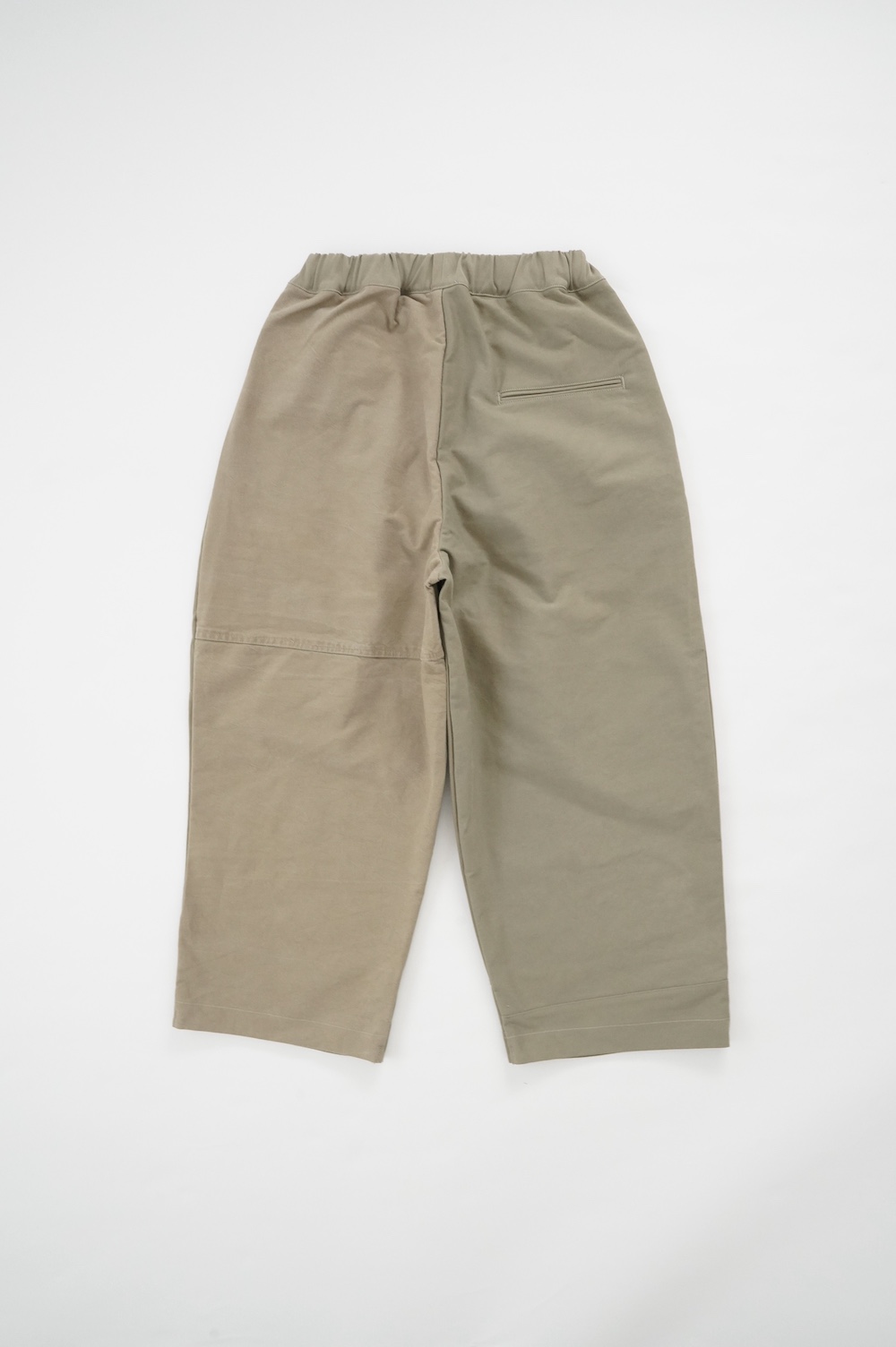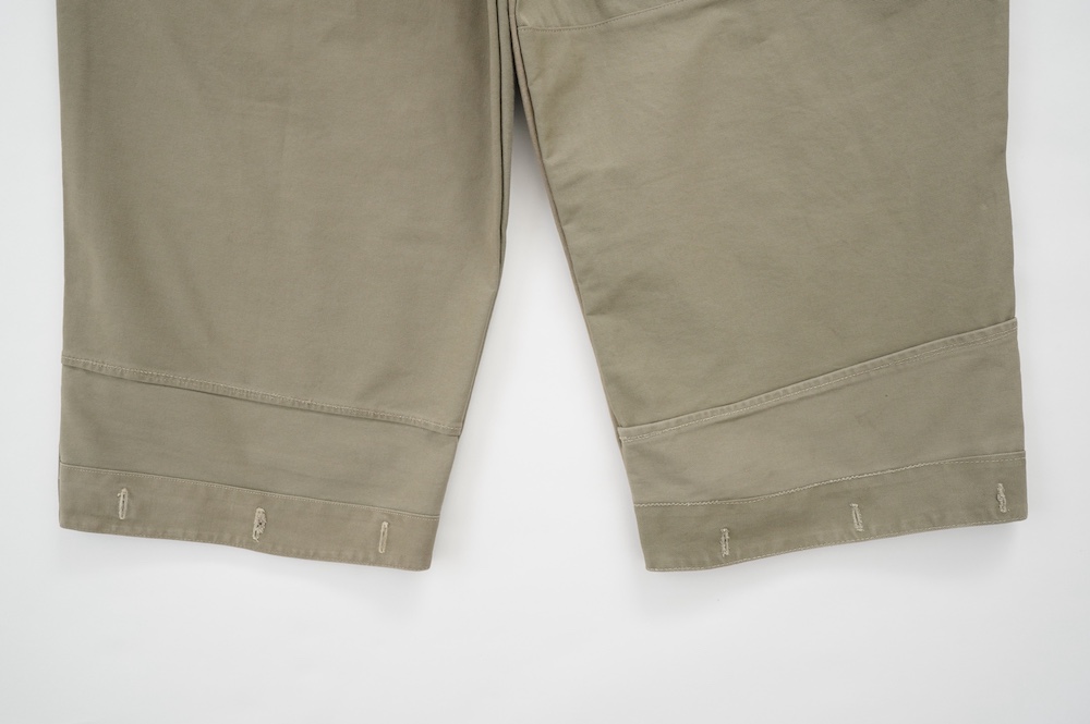 アルテポーヴェラのパンツ。イタリア軍の50年代チノシェラフケースを使用したリメイクパンツ。パーツをパッチワークしています。デザインは定番的に展開している2タックワイドパンツ。シルエットは、ワイドながらゆるやかにテーパードしています。ウエストにタックが入っているので、腰回りはゆったり。ハリのある素材感でワイドなシルエットを崩すことなく穿いていただけます。ウエストはゴムと紐の調節で楽に穿いていただけるイージーパンツ仕様です。パーツによって絶妙に違う色目がUSED素材を利用したリメイクならではの仕上がりです。一本一本違う表情で同じものが他にない愛着がわくパンツです。スウェットやTシャツでそのままカジュアルに着るのはもちろん、少し可愛らしいブラウスや革靴と合わせても面白い。通年通して穿いていただけるので、様々な季節のコーディネートをお楽しみいただけます。