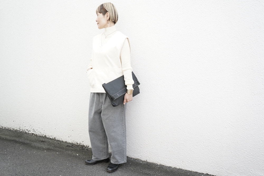 HAVERSACKのブラックデニムに合わせて