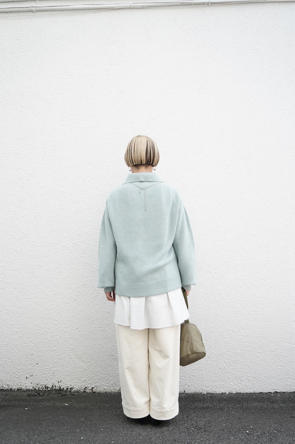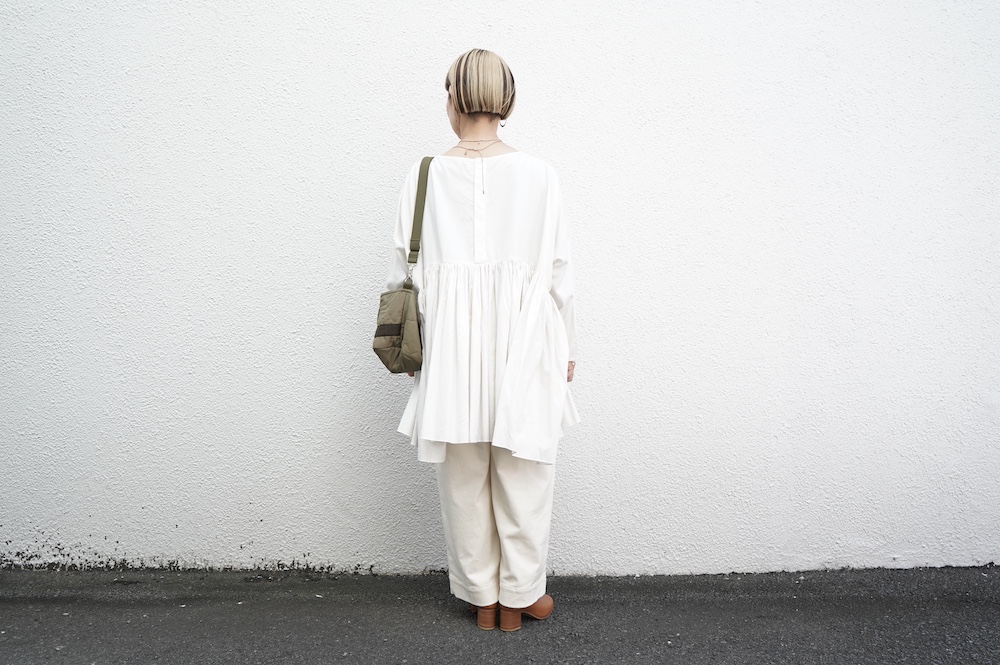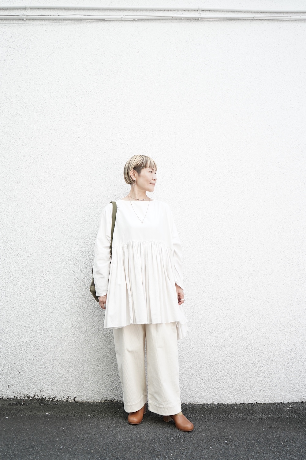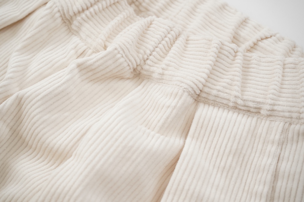 アルテポーヴェラのパンツ。ソフトな中畝のストレッチコーデュロイ生地を使用。しっかりした感触のコーデュロイは、ガシッとしながらもストレッチが効いて軽やかな履き心地です。着用でのごわつきは感じません。また、畝にクラッシュした跡のある少し荒々しさも見受けられる国産のコーデュロイは、他になかなか見られない表情で、個人的にひと目惚れでした。たいていのたたみジワはアイロンで整いますが、そうでない箇所もございます。生地の特性上、キレイめのコーデュロイをご希望の方にはお勧めできませんが、ハードにカジュアルにオシャレに穿いていただけるおすすめのコーデュロイです。ホワイトは特製の跡は目立ちませんし、じっくり見てもあまりわかりません。