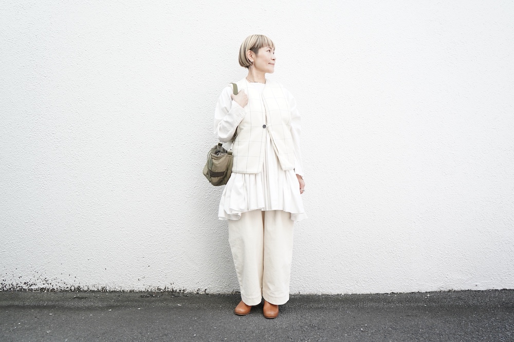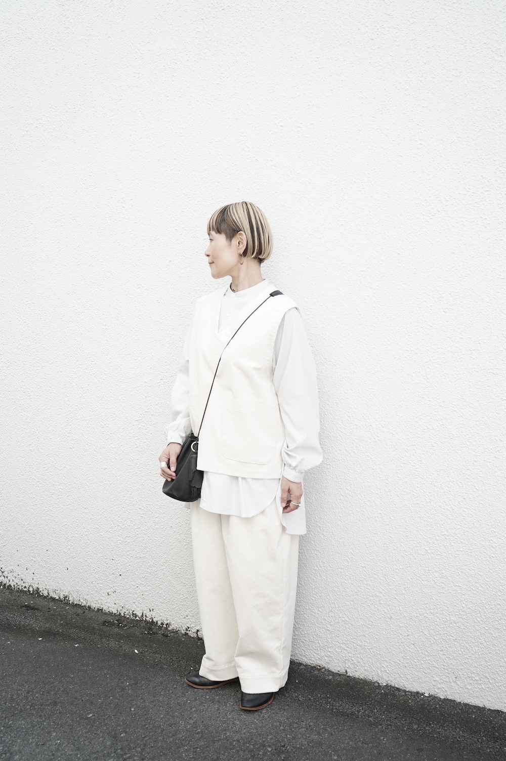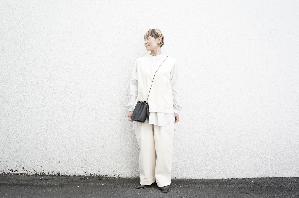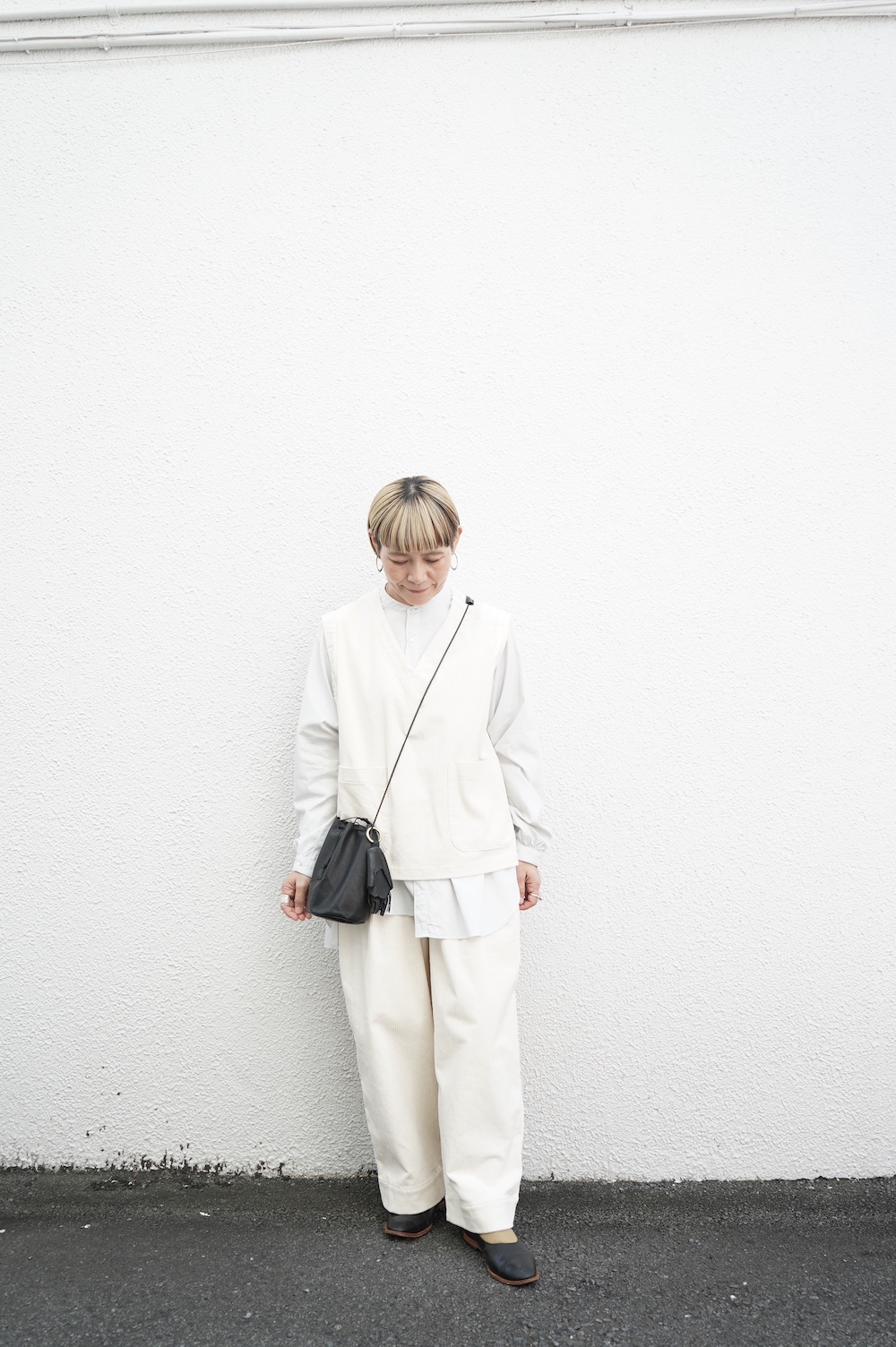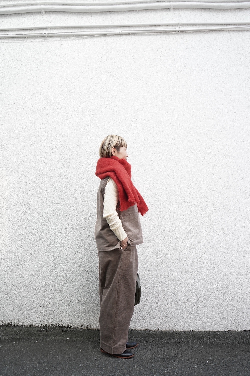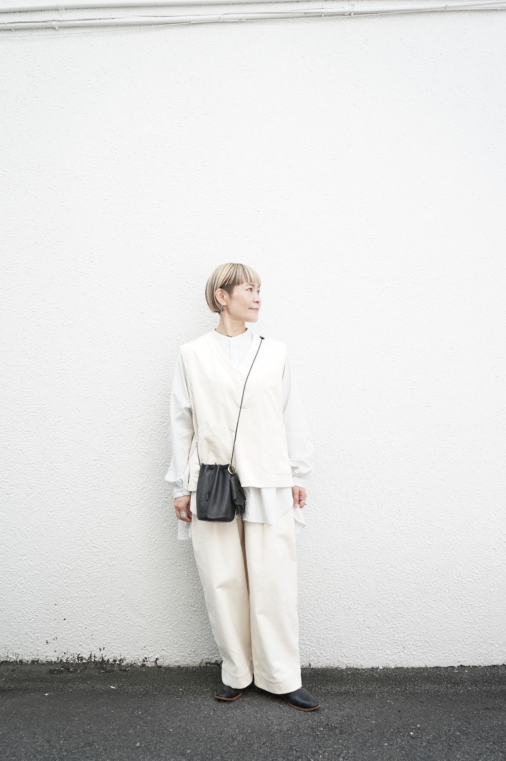 デザインはワイドながらゆるやかにテーパードしたイージーパンツ。ウエストに2タック入っているので、腰回りはゆったり。ハリのある素材感でワイドなシルエットを崩すことなく穿いていただけます。ウエストはゴムと紐の調節で楽に穿いていただけるイージーパンツ仕様。同素材でベストもございますので、セットアップもお勧めです。フルレングスなのも秋冬は嬉しいポイント。コーデュロイ 特有のゴワっと感がなく、ストレッチ性もあり穿き心地抜群のコーデュロイパンツです。