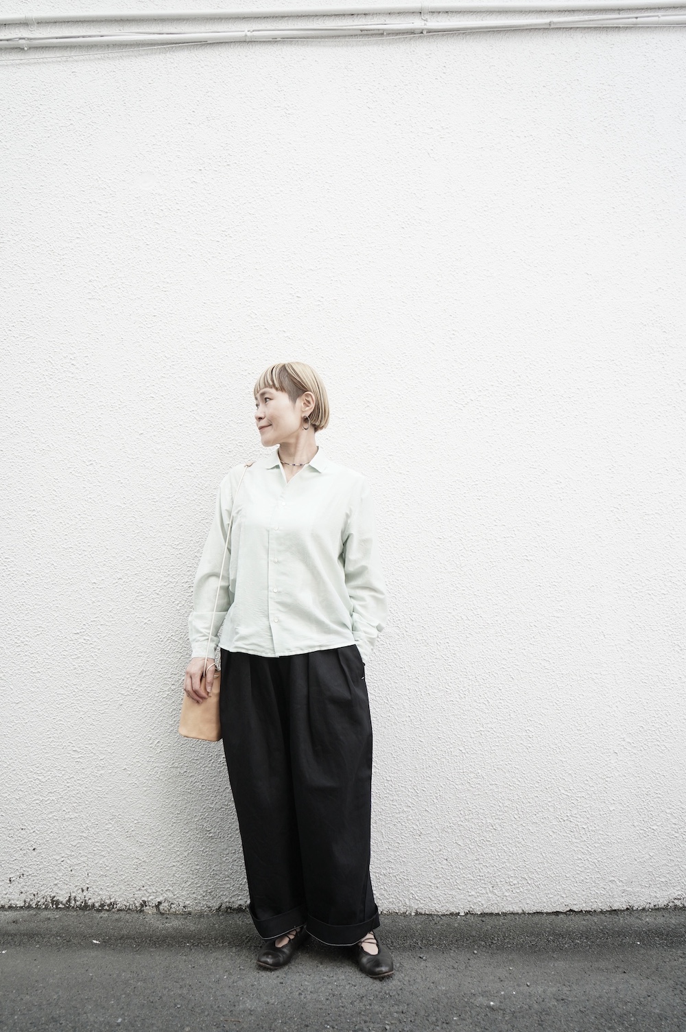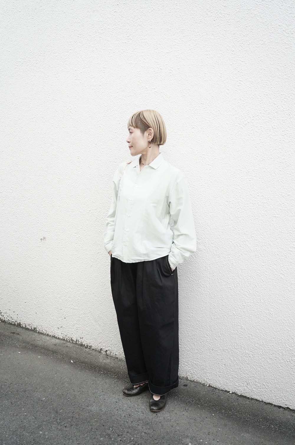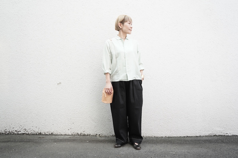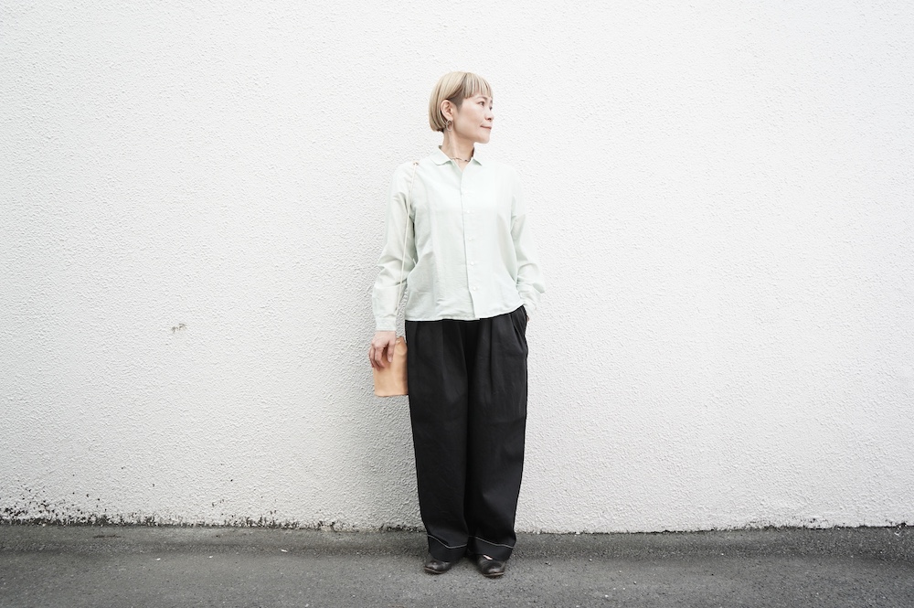 quitanのコットンシルクシャツに合わせて