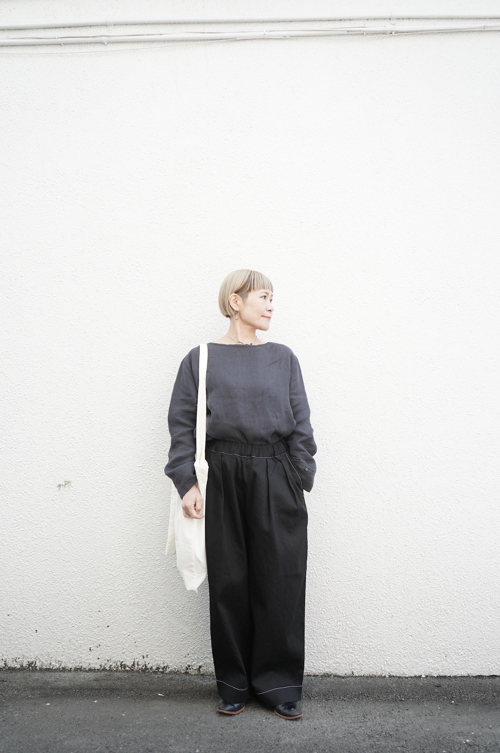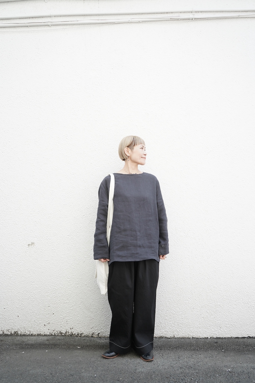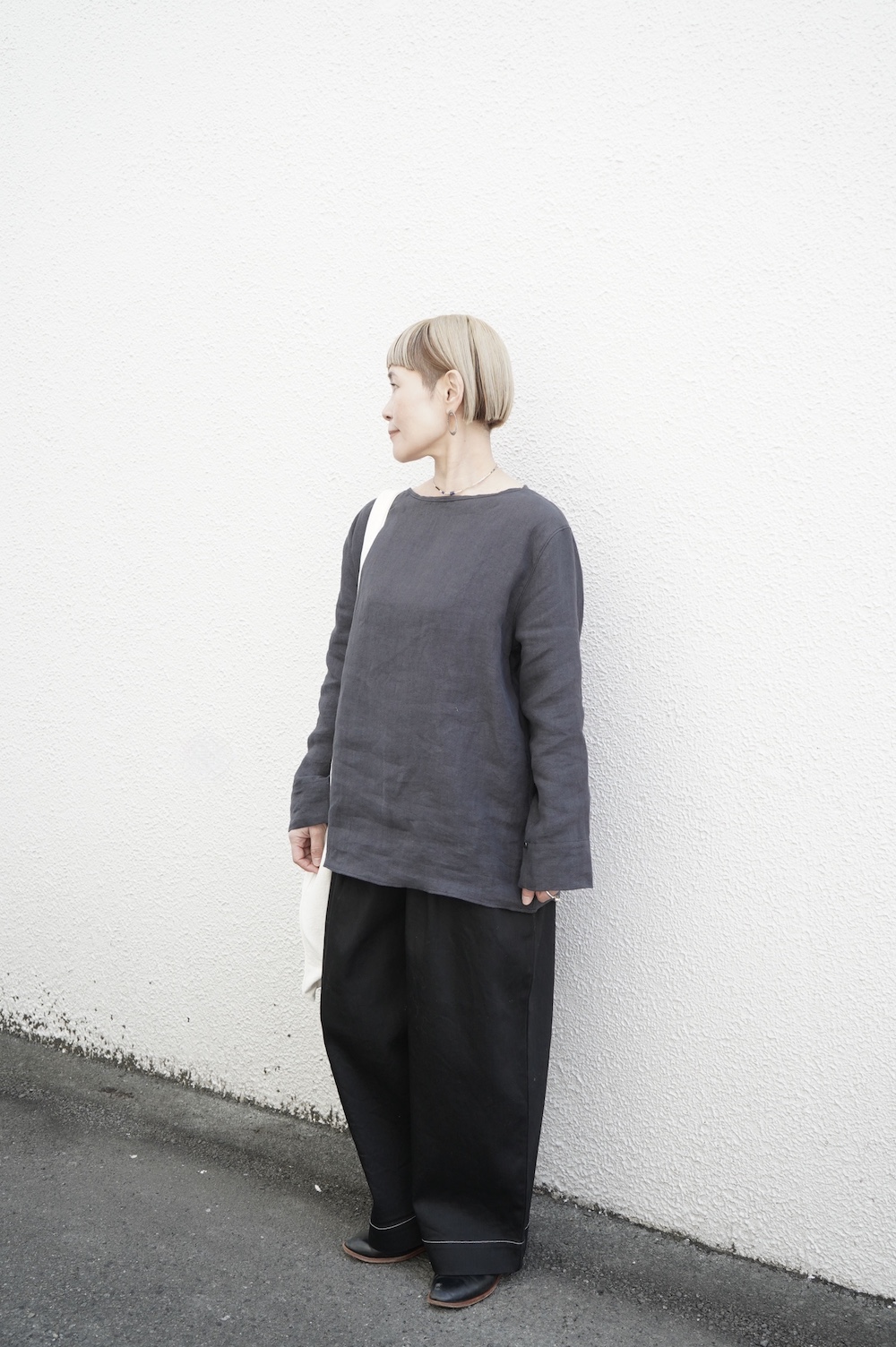 quitanのコットンシルクシャツに合わせて