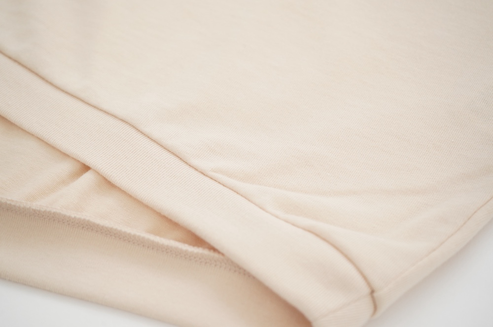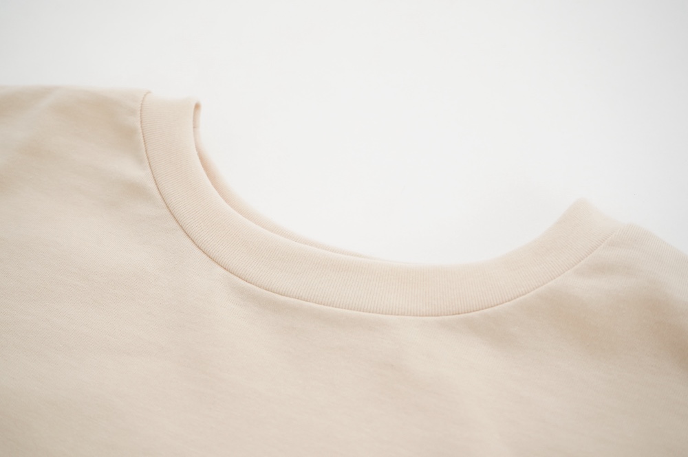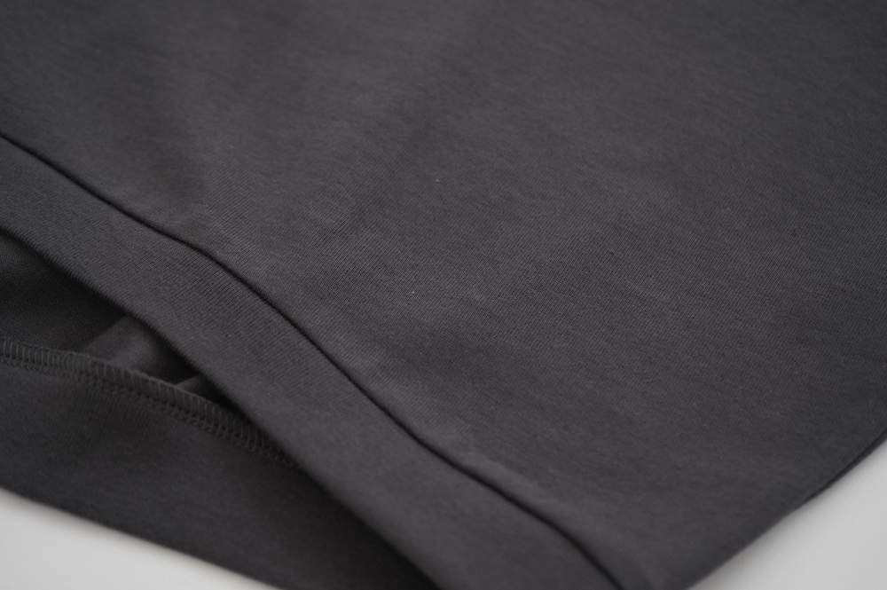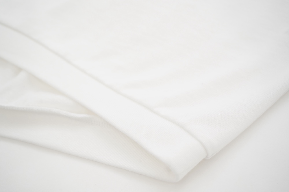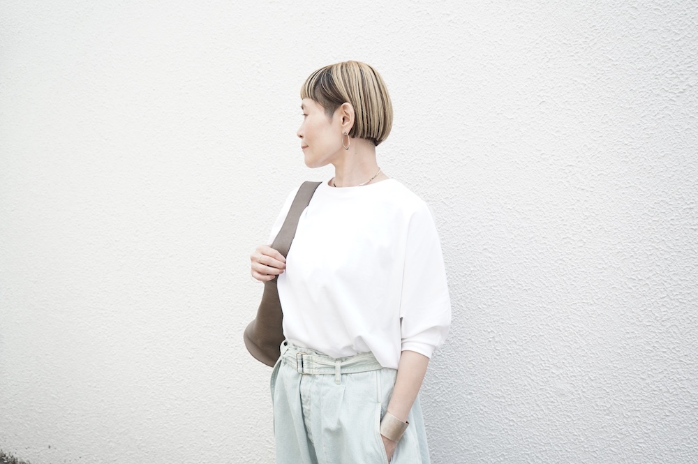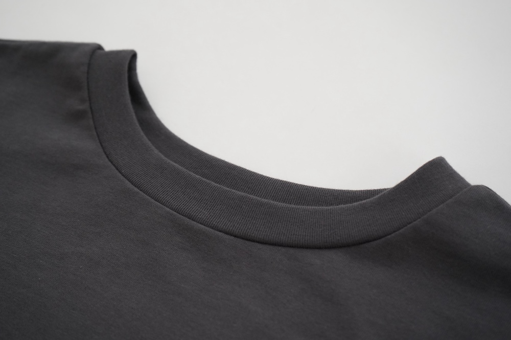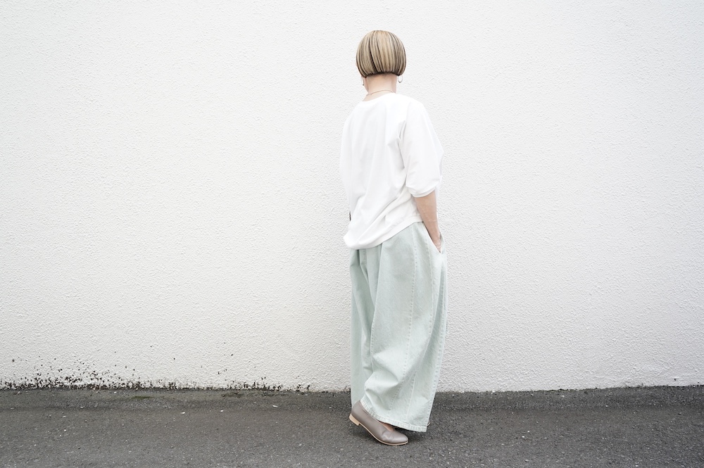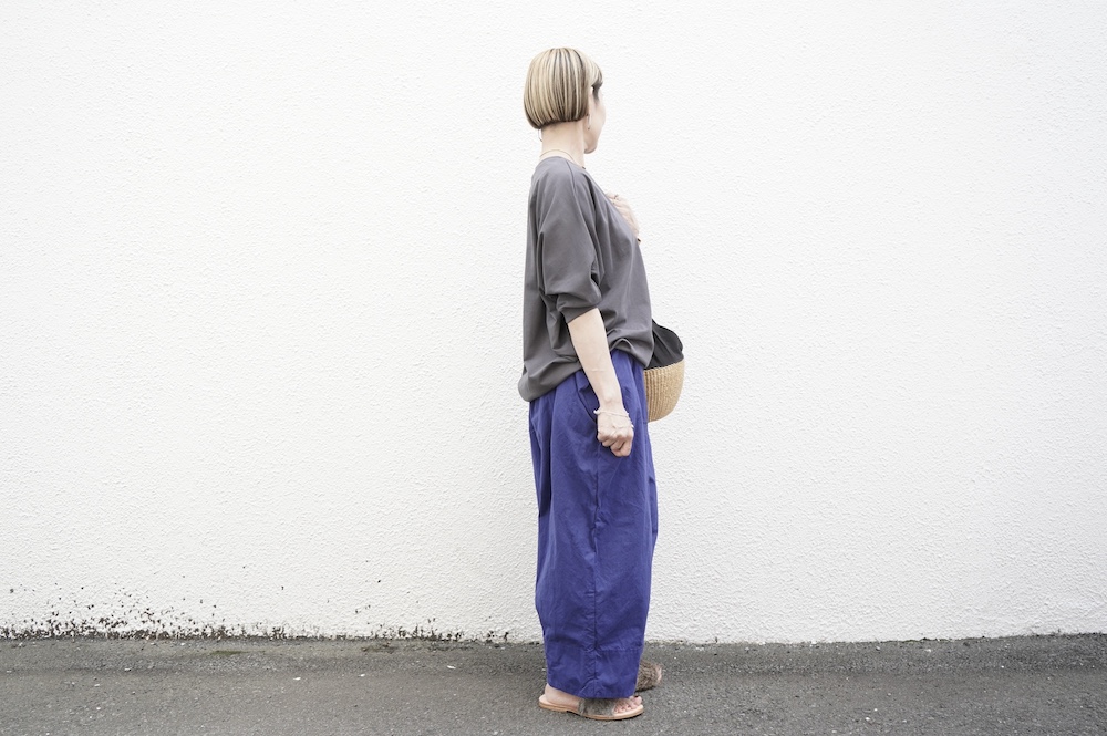 トラバイユマニュアルのカットソー。環境に配慮した染色方法を用いた天竺生地を使用。程よい厚みで透け感も少なく、また身体の線を拾いにくい生地感です。長年展開していたクラシック天竺と比べるとやや薄手で、柔らかな肌触りです。