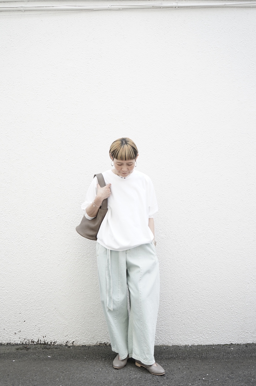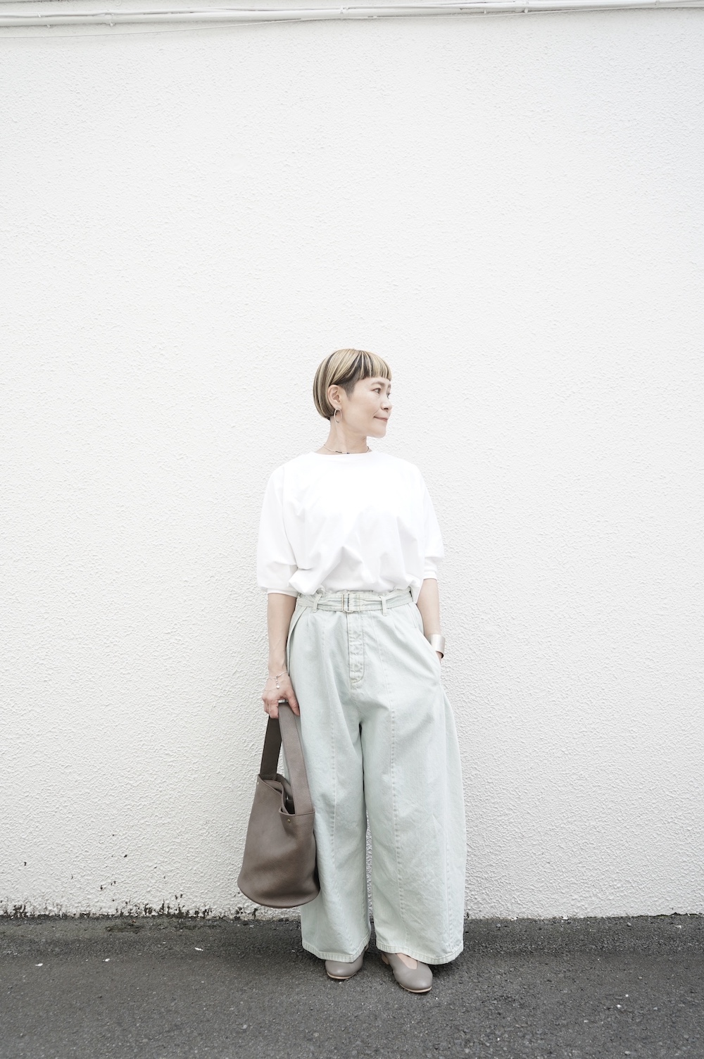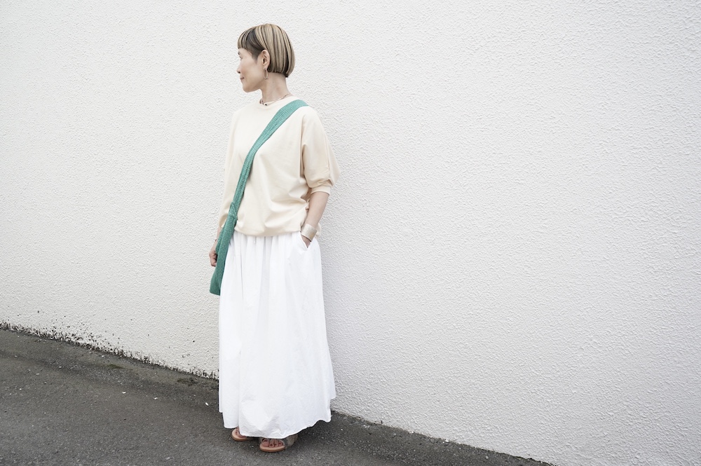 ホワイト着用画像 (モデル身長155cm)