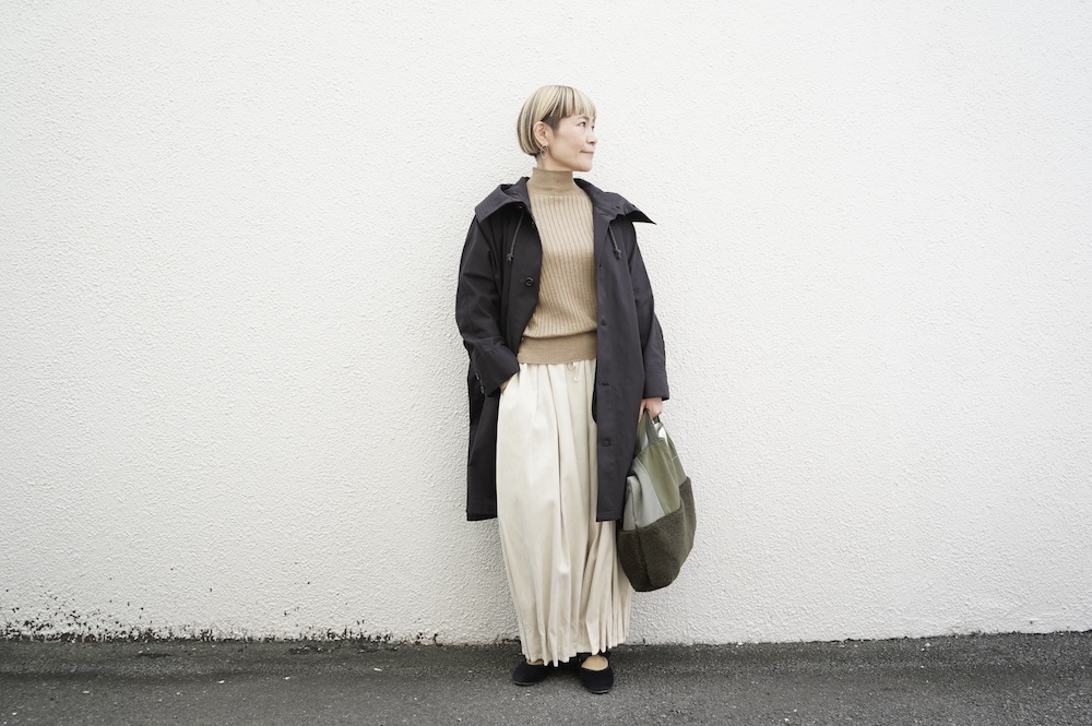 上からquitanのコートを着て