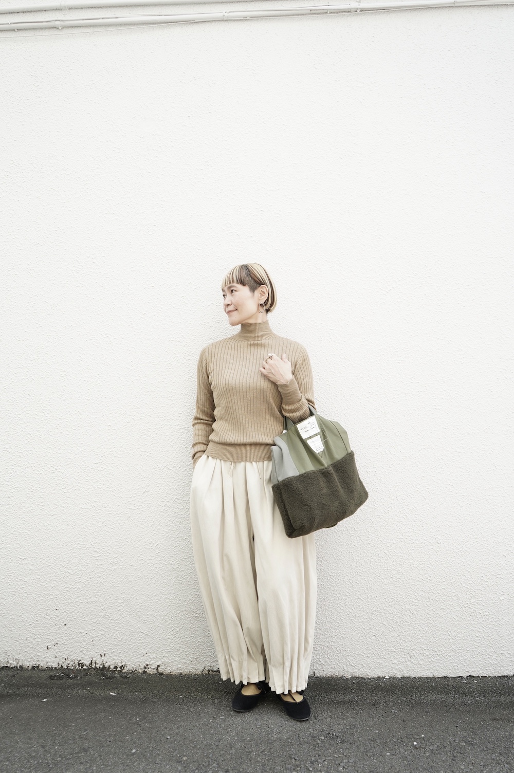 FACTORYのプリーツパンツに合わせて