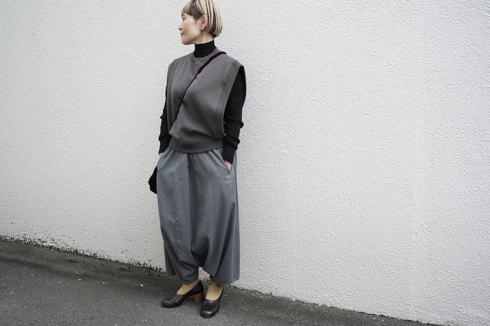 日常は、羞じらいや緊張、可笑しさや軋みなど曖昧な気分を見つける小さな旅の繰り返しです。そんな不確かで不均等な日々の気分を男らしい、女らしい、という感覚に捕われず、時代や物語のイメージを重ねて衣服として表現します。