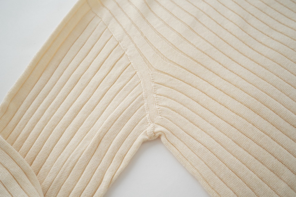 ほっそりとしたシルエットでソフトで優しいフィット感のリブ編み