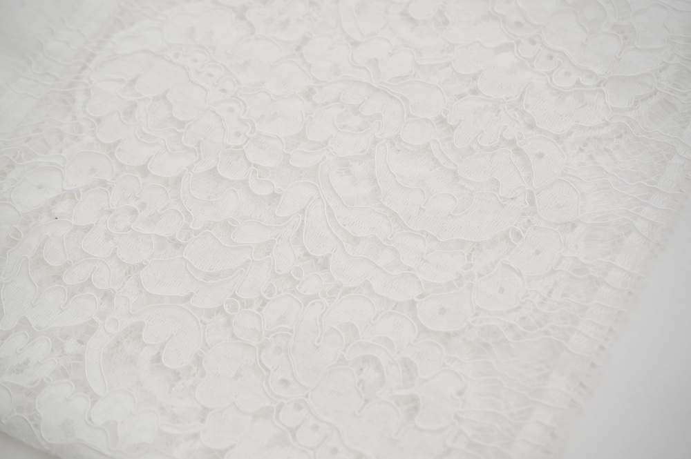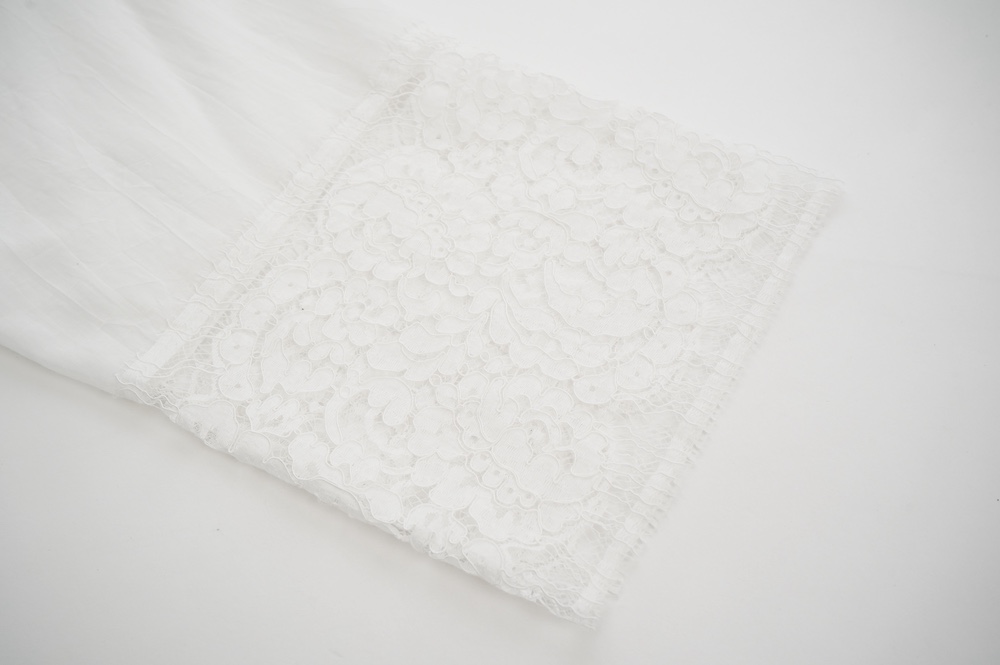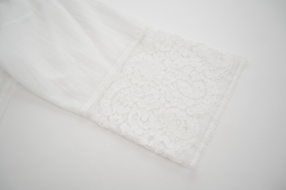 太めですがスラリとした袖の先端は、フランスのリバーレースを使用しています