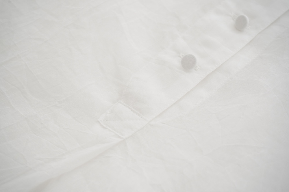 "ススリ"のチュニック。細い強撚のコットン糸を使用し、細かなシワ感をつけて織り上げたサラサラのコットン生地を使用。涼しげな透け感と、シャリッとした肌触りが心地よい清涼感のある上品な素材です。
