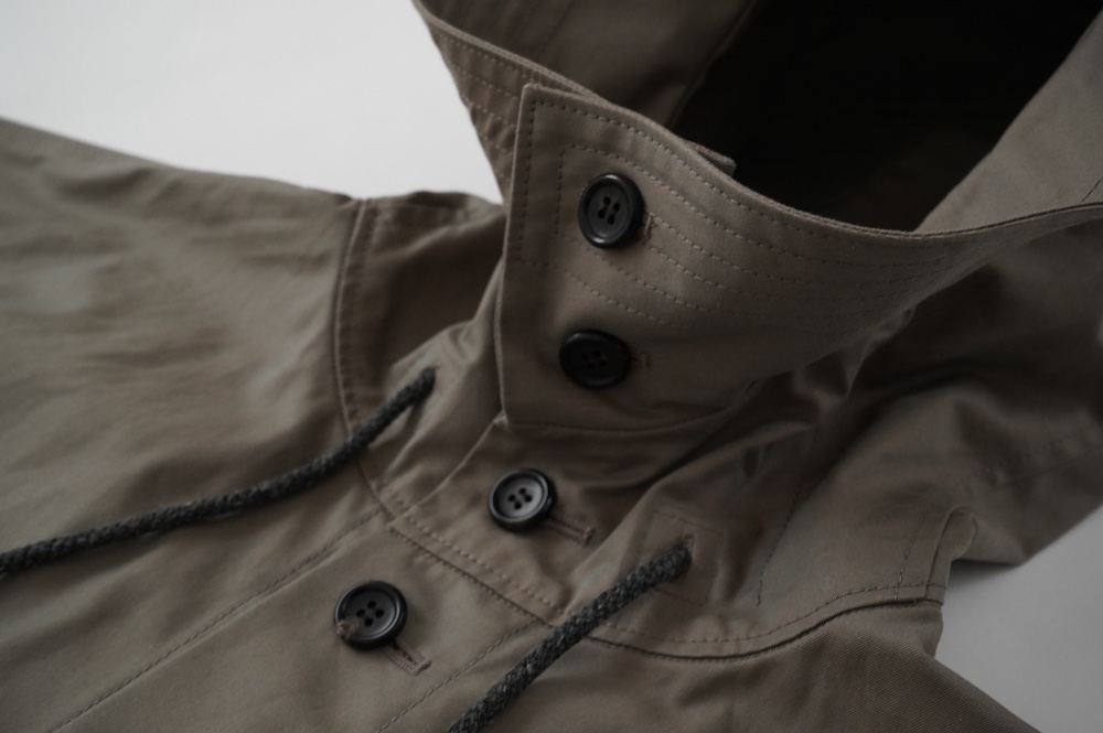 生地はとても高密度な綾織で、いわゆるバーバリィ素材と言えるクウォリティーです。