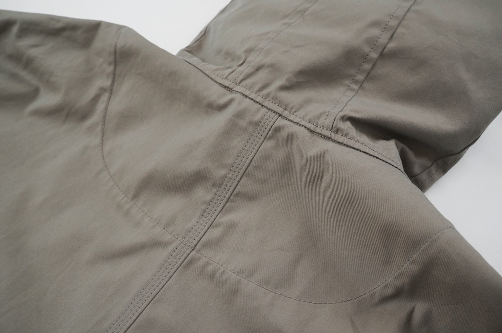 背面と外袖のステッチは強度のある折り伏せの3本針