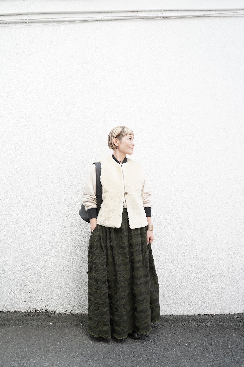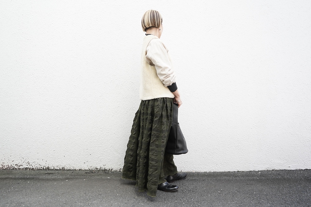 かなり色々なサイズ感の洋服に重ねられます。