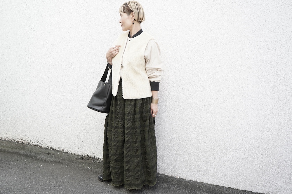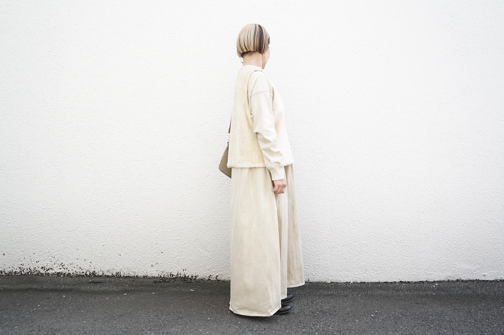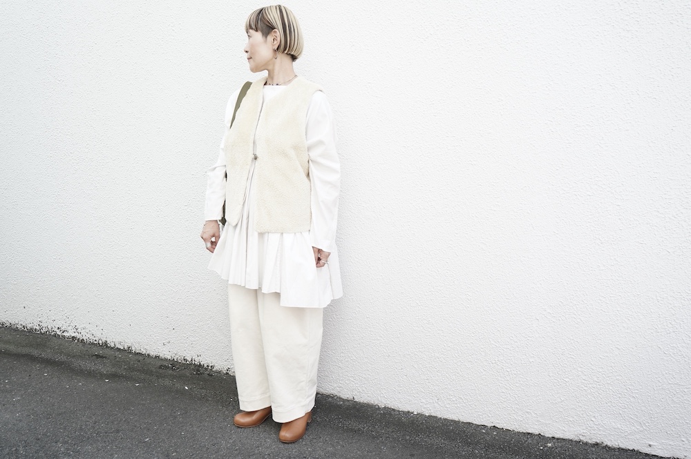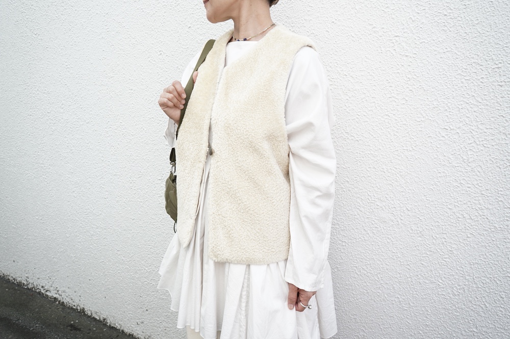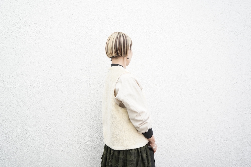 FIRMUMのリブシャツに重ねて(ボア側)