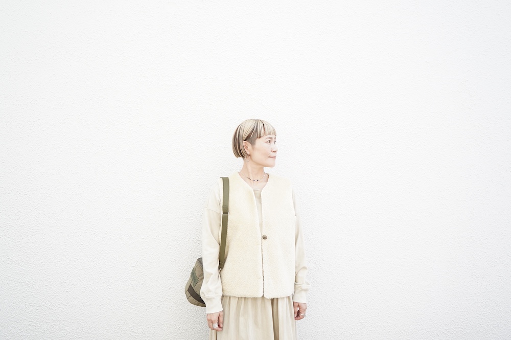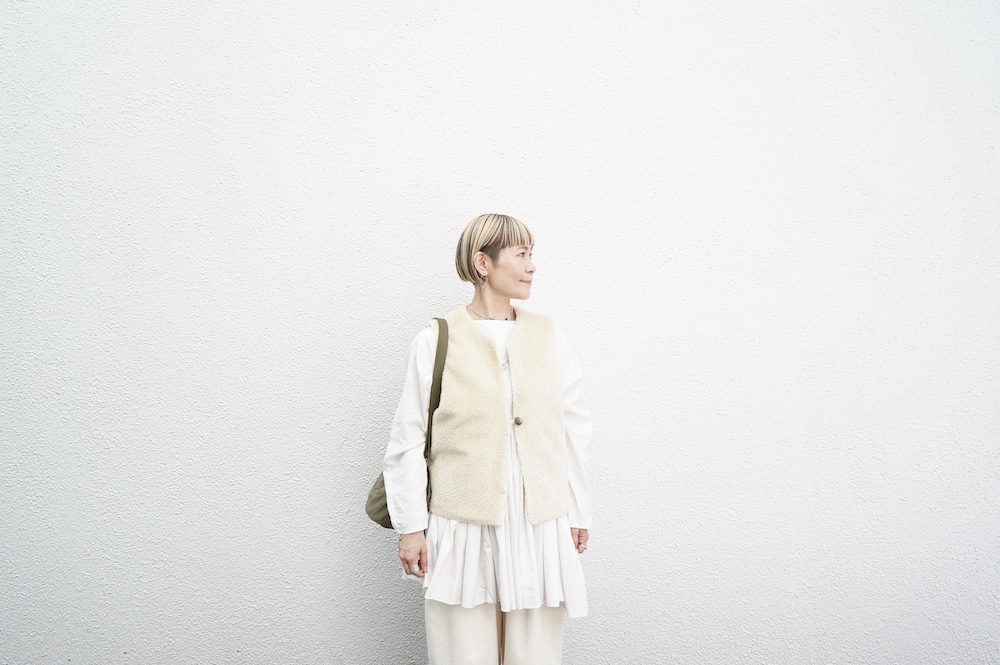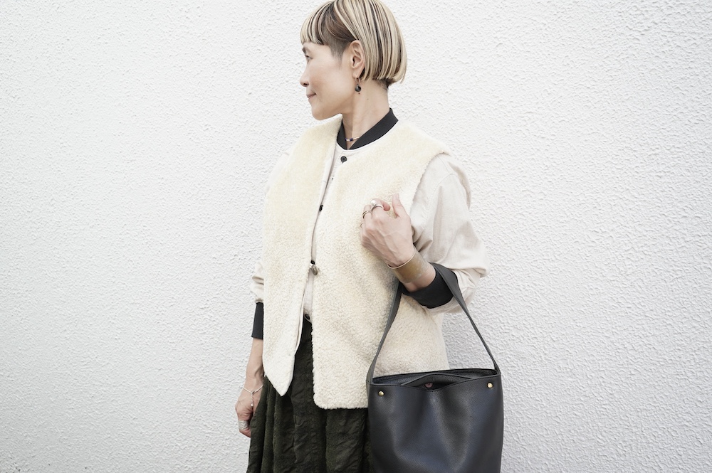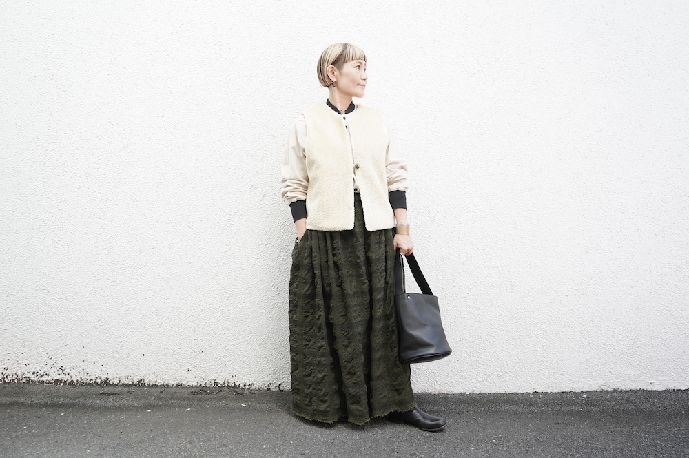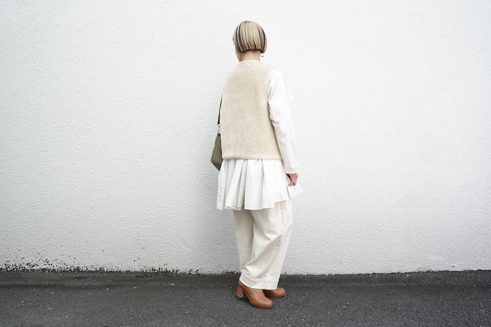 FIRMUMのリブシャツに重ねて(ボア側)