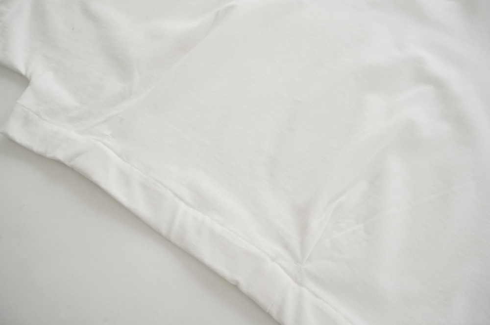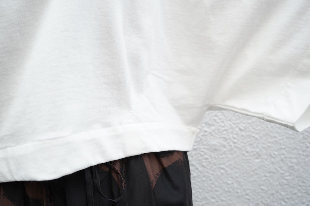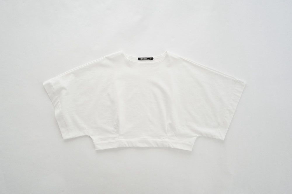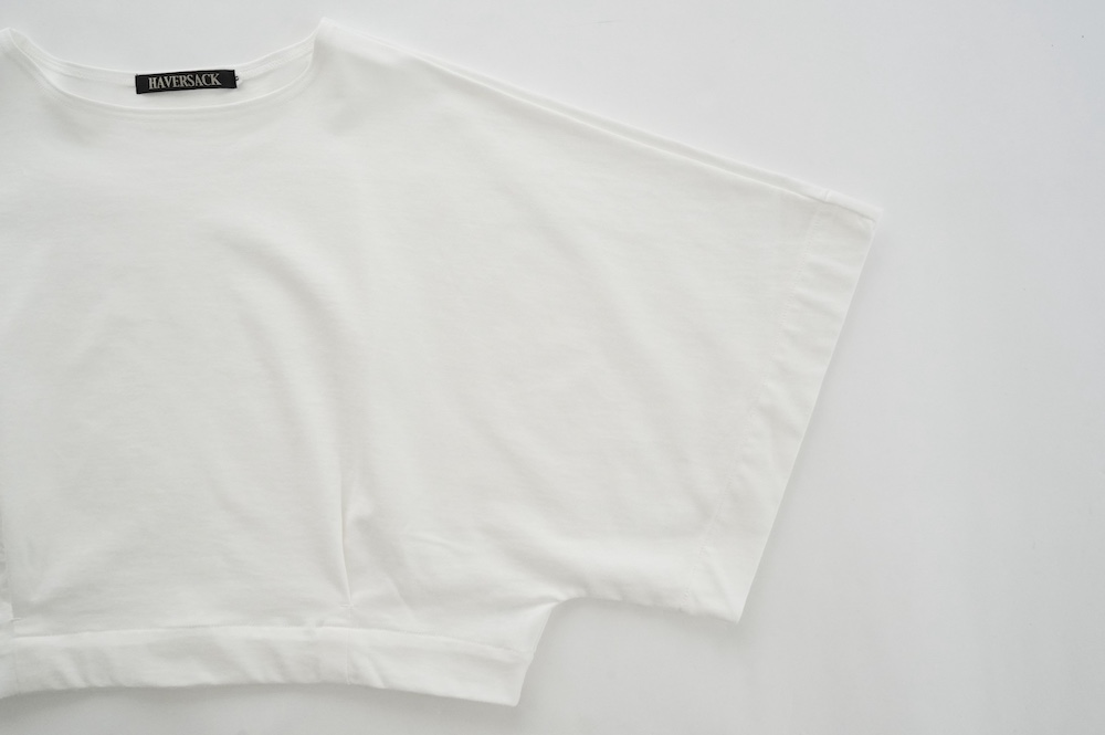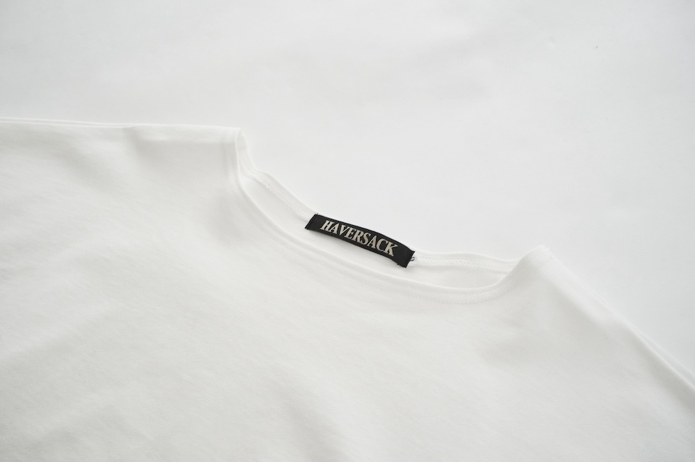 "ハバーサック"のプルオーバー。ドライタッチな天竺素材を使用。しっかりとした生地感で、ホワイトですが透け感は控えめ。身体のラインを拾いにくいカットソー素材です。
