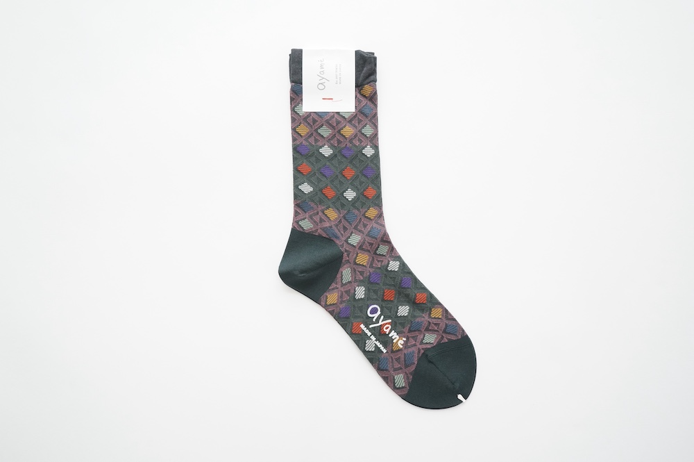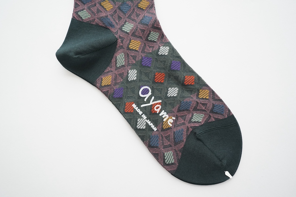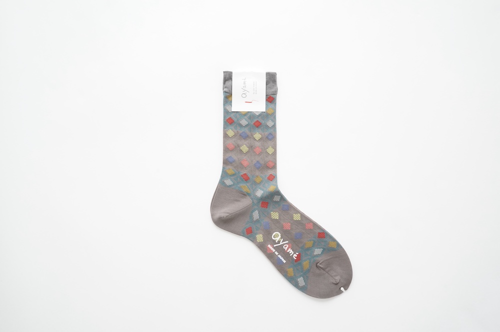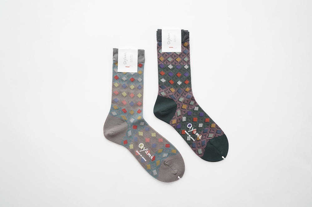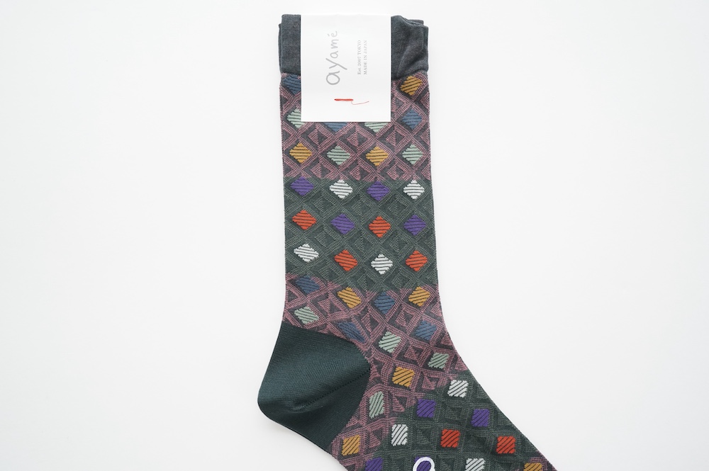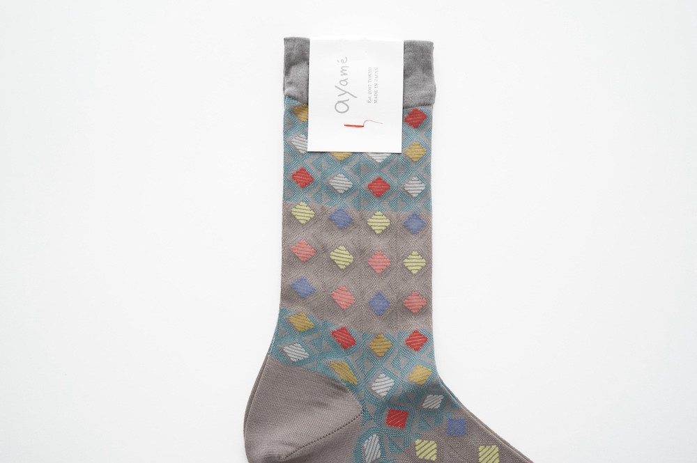 アヤメのソックス。ワッフルコーンのように格子状にカラフルな色が並ぶワッフルコーンソックス。柔らかい色使いが可愛らしい。普段は目につかない部分だからこそ、楽しみたい。足ものを彩るアイテムです。