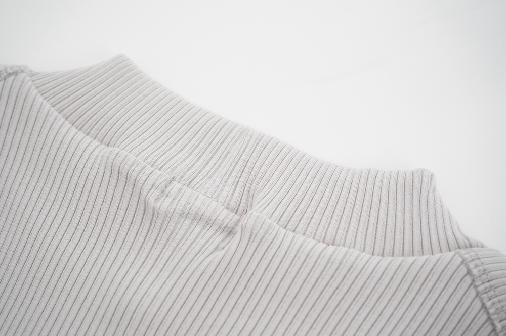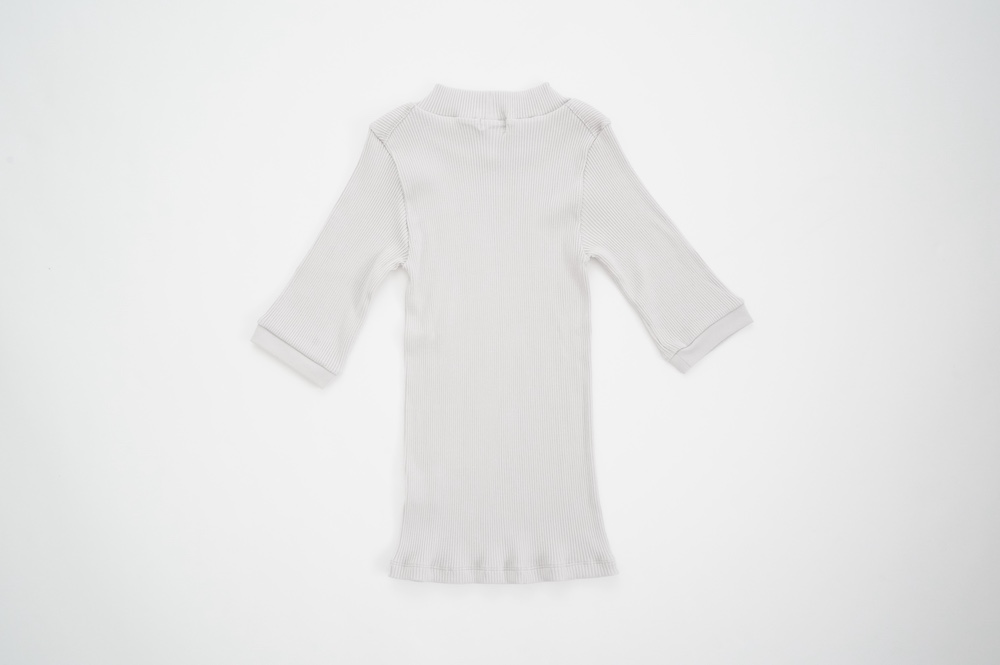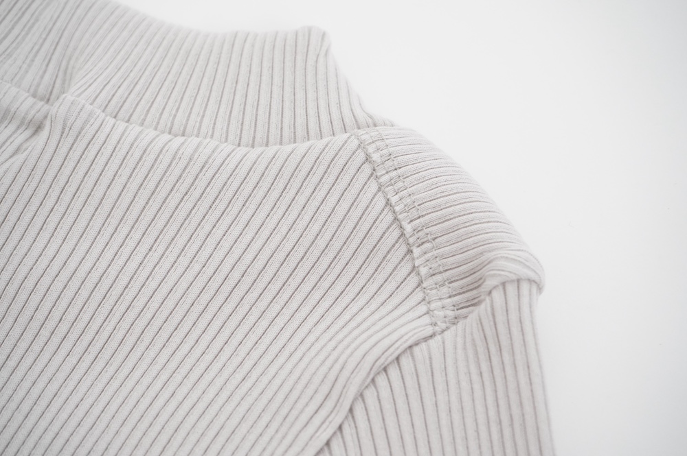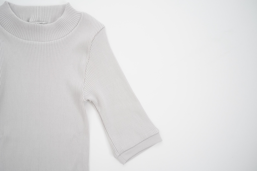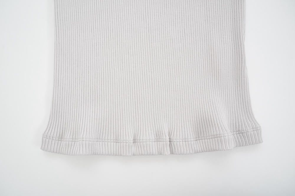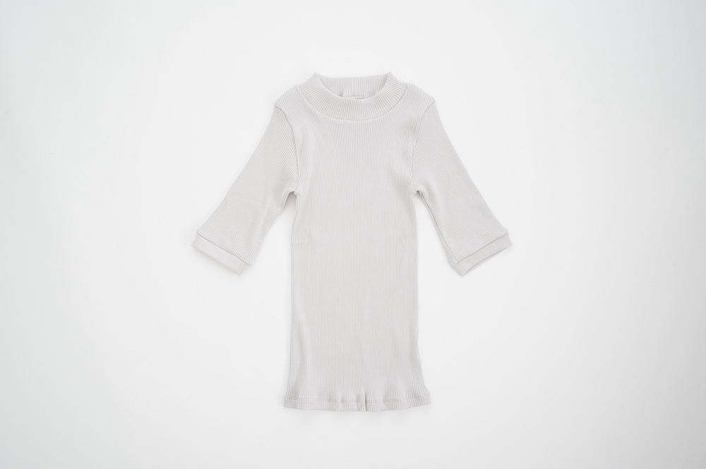 50/2スーピマコットンを使用した丸胴の変則テレコ生地を使用。コットンシルクのrib innerシリーズと比較すると糸番手が太い分生地がしっかりしていてテンションも強めですが、ポリウレタン混ではないので着用をしていくうちに徐々に緩くなっていきます。 細身で程よく体にフィットしインナーとしても着られるので、夏から秋口までの長い期間活躍してくれそうです。透ける心配がないので、もちろん1枚で着てもカッコ良いです。