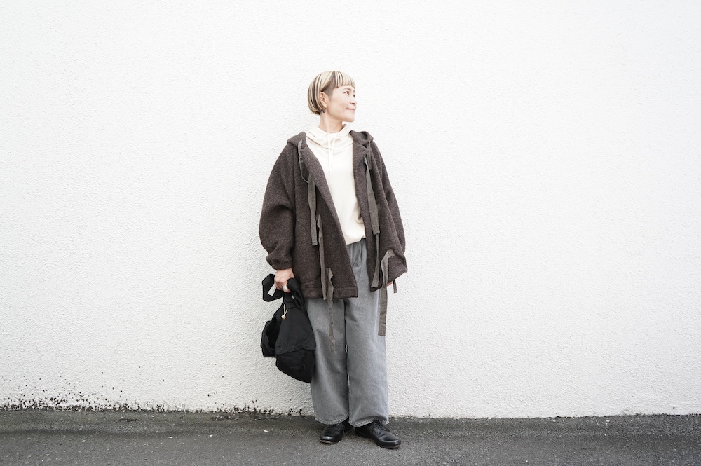 アウターを羽織って