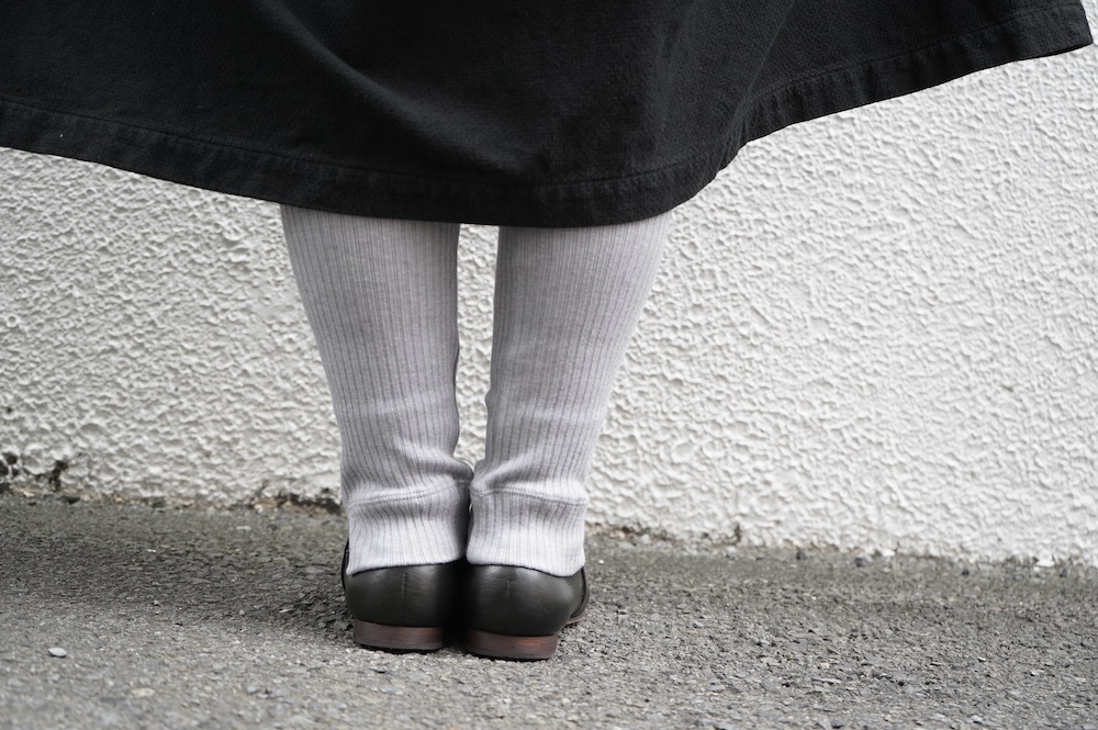 ヒップ周りはシームレスなチューブ編みになっており、包み込まれるような着心地です。運動量が多い股下に切り替えを取り、立体的な仕立てになっています。容易にお洗濯ができるウォッシャブルなシルク混なのでお手入れのしやすさも嬉しい。締め付け感がなく肌触りも抜群のレギンスは、化繊やウールが苦手な方にもお勧めです。デザインはシンプルに外側にスリットが入っています。股下は少し長めで足首にかかる所でスリットが開く感じになります。