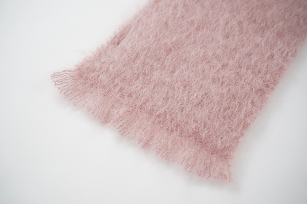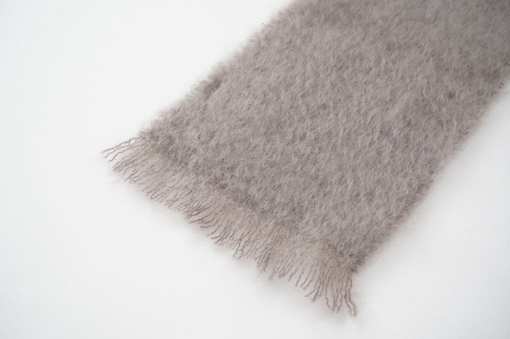 マンタスエスカレイのストール。ホワホワとした上質なモヘアのストールです。そのクウォリティーの高さから、誰もが知るビッグブランドの生産を、数年前から引き受けることになりました。何と言っても発色が美しいのが魅力です。また、モヘア特有の毛が抜けやすいのが、こちらは少ないのも嬉しい。初めは抜けやすいですが、段々と落ち着いてきます。巻きやすい幅で長さも程よく、首元に収まりのいいサイズ感のストールです。気分が上がる発色の綺麗なカラーで、スタイリングのアクセントにぴったりです。今季からブランドタグが変わりました。