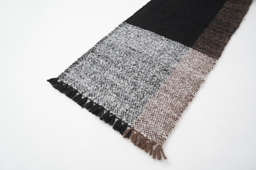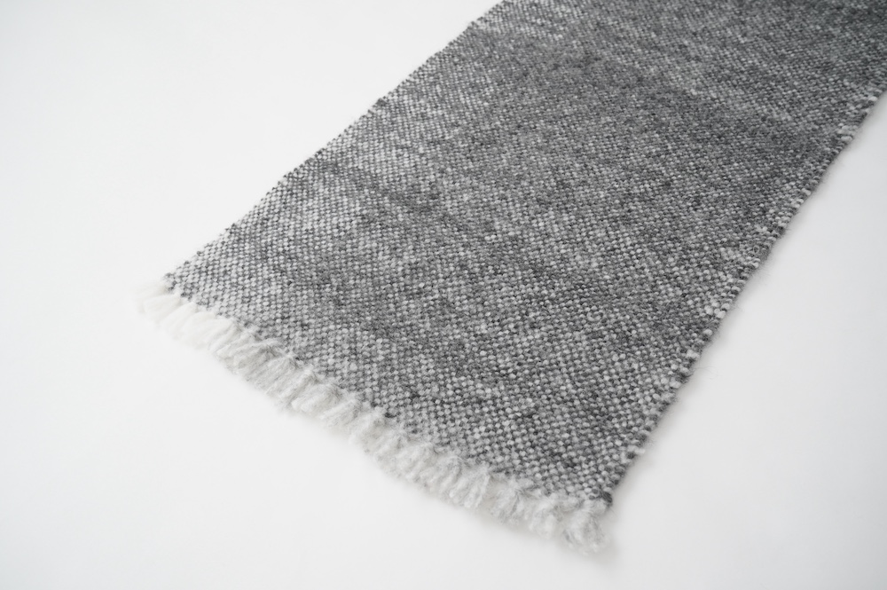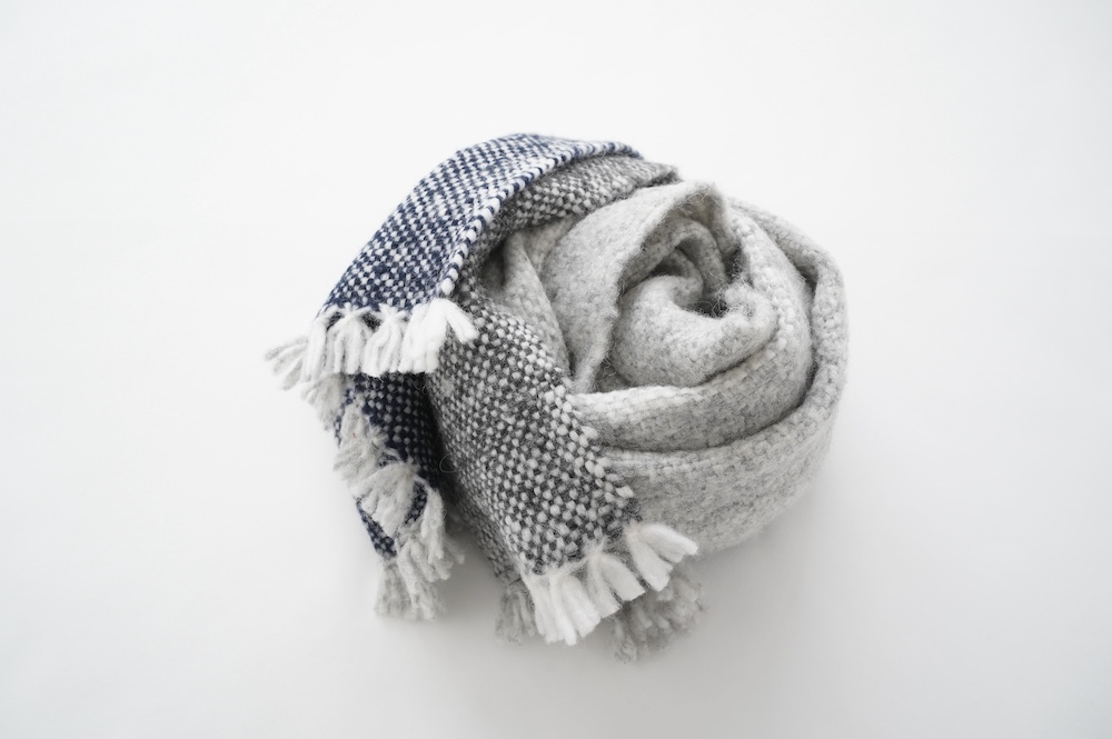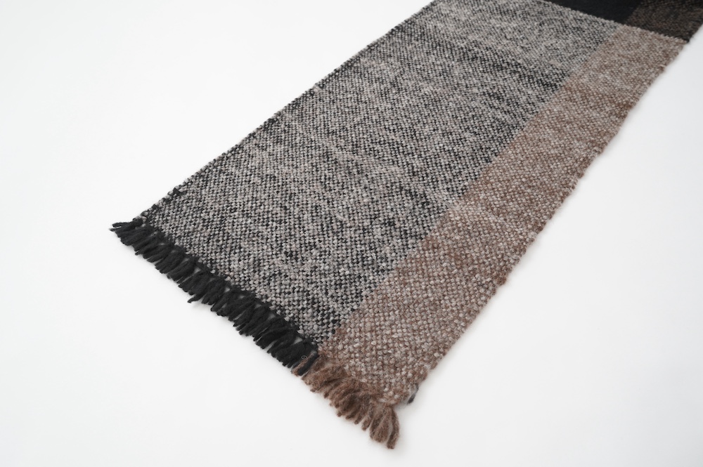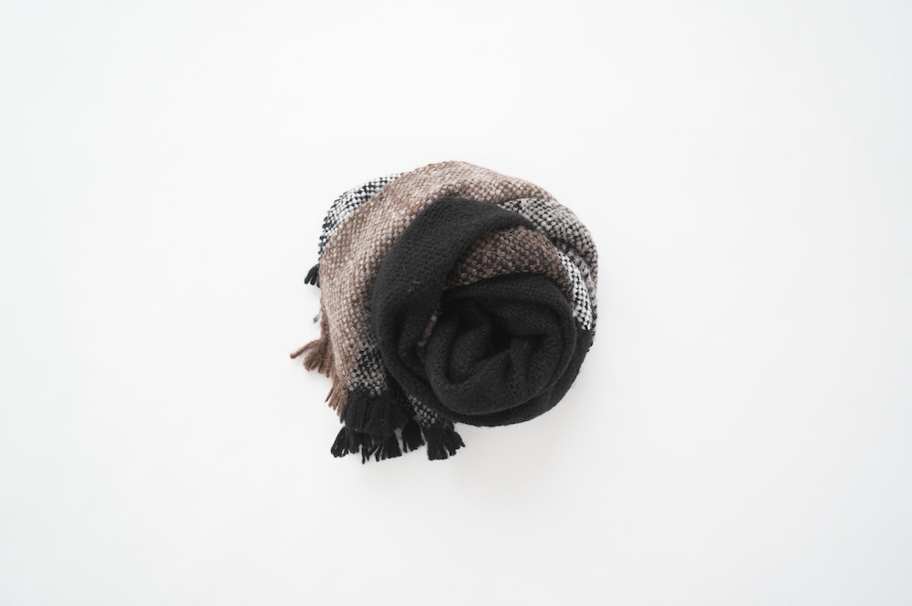 "ゴーシュ"のストール 毛が柔らかく希少性の高いベビーアルパカとウールを混紡した、手織りのストールです。非常に軽くて温かいのが特徴です。ざっくりとした風合い豊かなストールは触れるだけでふわっと温かく、優しい色合いも相まって秋冬のスタイリングを引き立ててくれます。小さなフリンジも可愛らしい。肩に掛けたり、くるりと巻いたりと使い勝手の良い長さとボリューム感です。