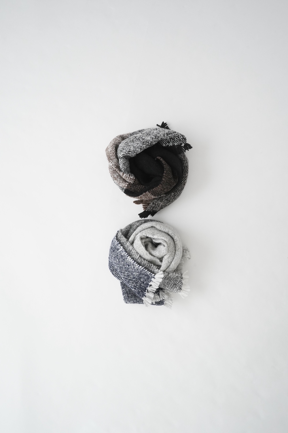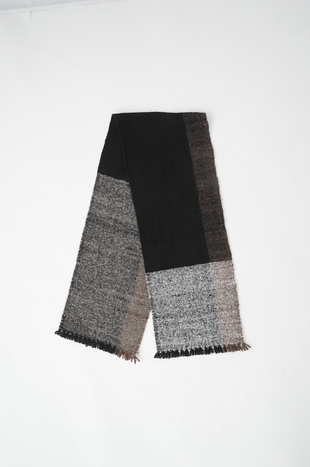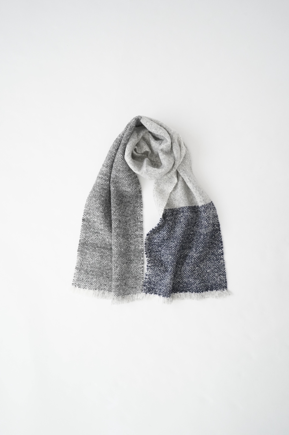 "ゴーシュ"のストール 毛が柔らかく希少性の高いベビーアルパカとウールを混紡した、手織りのストールです。非常に軽くて温かいのが特徴です。ざっくりとした風合い豊かなストールは触れるだけでふわっと温かく、優しい色合いも相まって秋冬のスタイリングを引き立ててくれます。小さなフリンジも可愛らしい。肩に掛けたり、くるりと巻いたりと使い勝手の良い長さとボリューム感です。