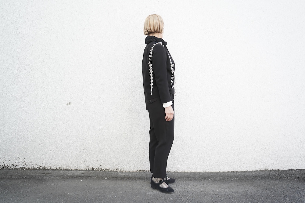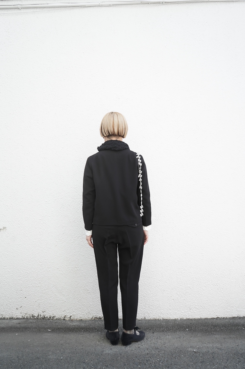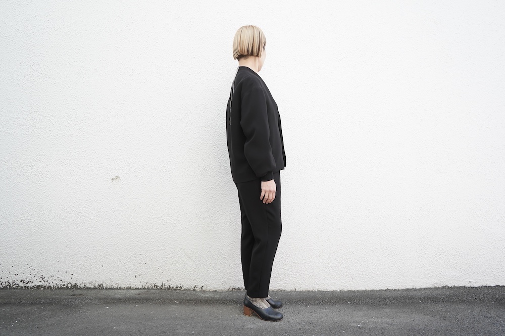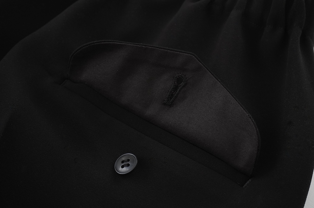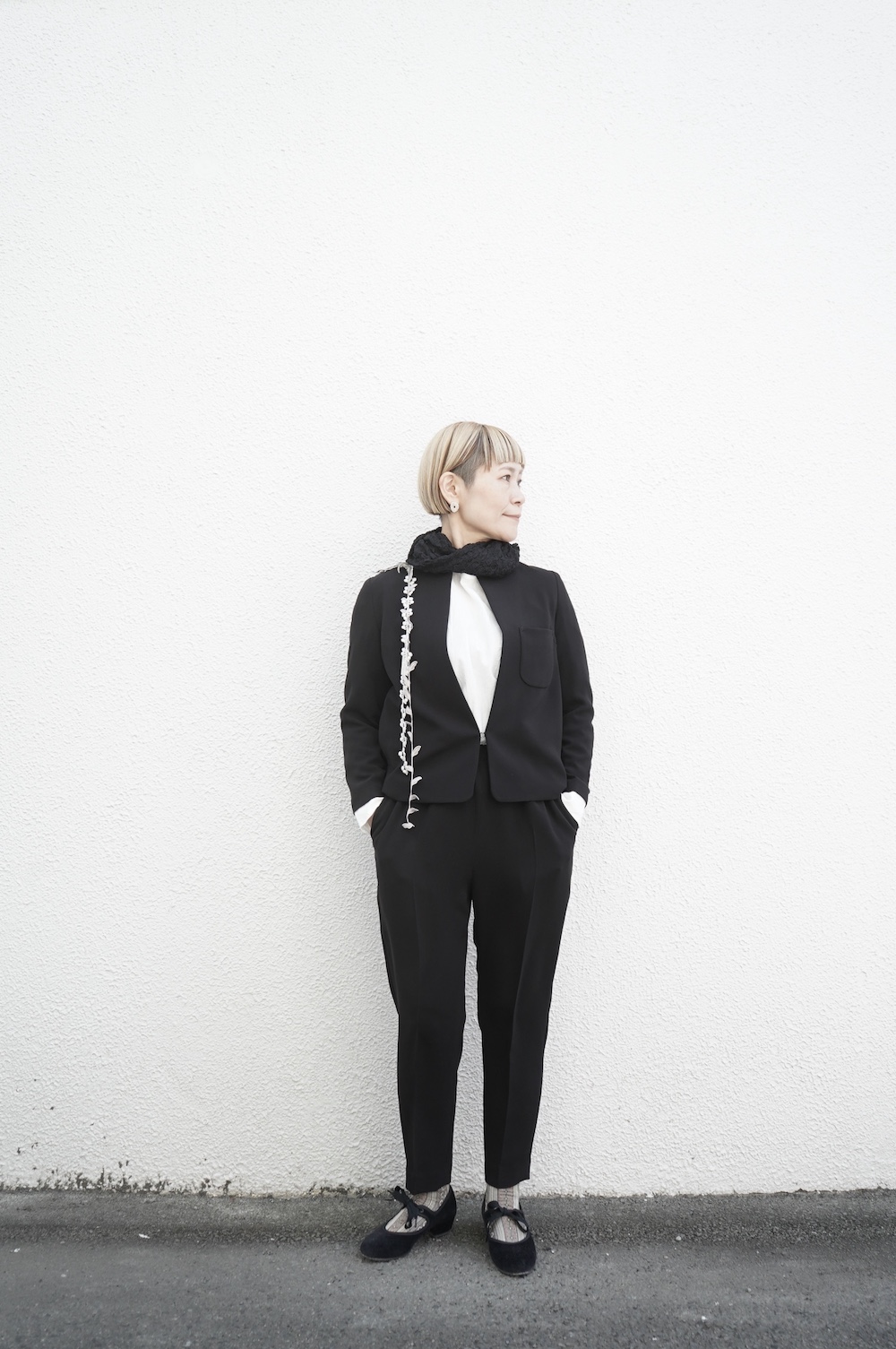フォーマルでも使用できるストレッチの効いたアセテート&ポリエステル素材を使用。光沢感ととろみのある上品な素材で、シワになりづらいのもポイントです。パンツのシルエットは細身でスッキリとしたテーパード。センタープレスが施されているので、縦のラインが美しく際立ちます。着丈は少し短めの9分丈です。フォーマルシーンだけではなくお仕事やお食事などのちょっとした場面でも着ていただきやすく、また細身ながら少しストレッチ性のある素材なので着心地も窮屈感がありません。同素材のジャケットと合わせてセットアップがお勧めです。