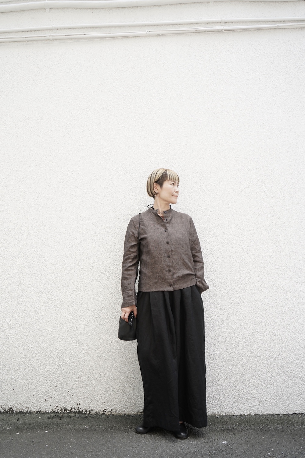 少しシャキッとした綺麗めの光沢感あるリネン素材