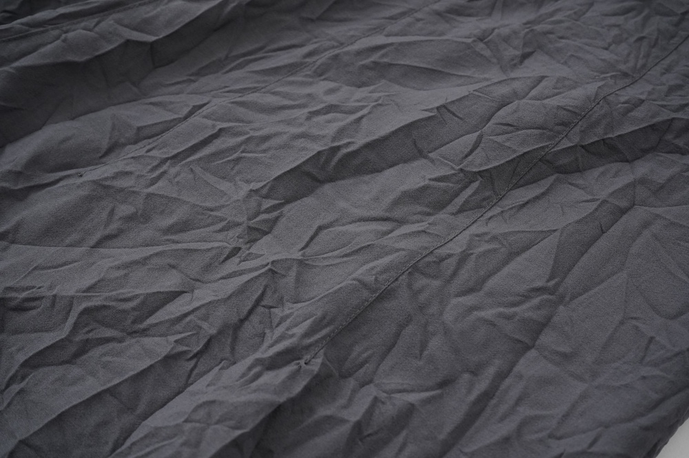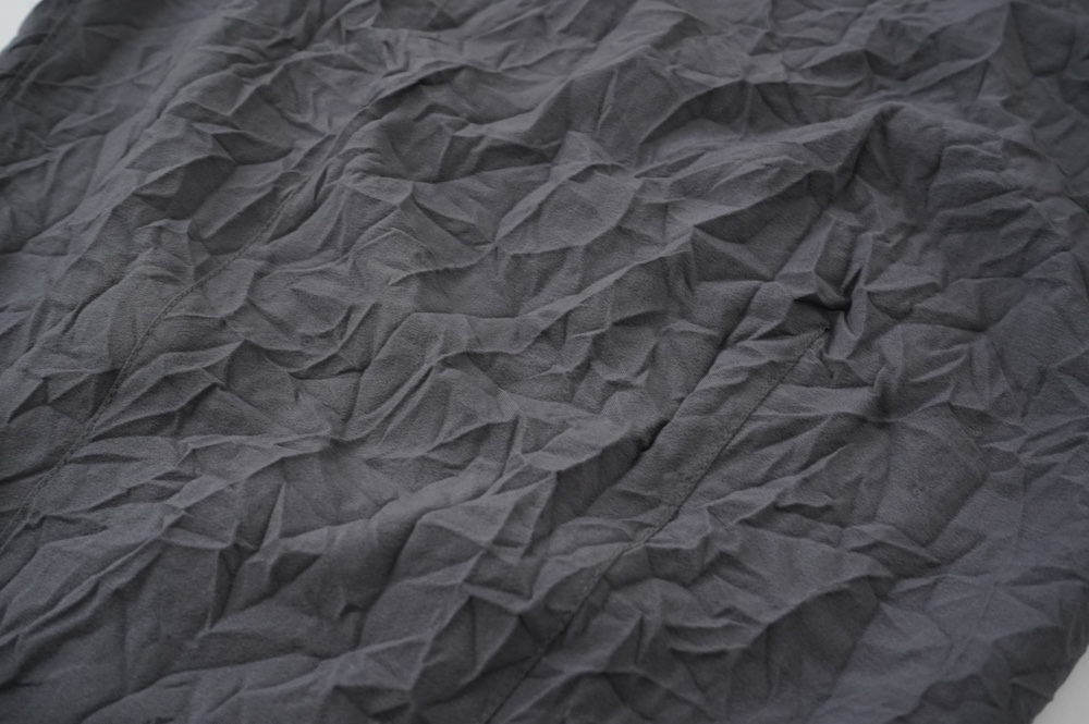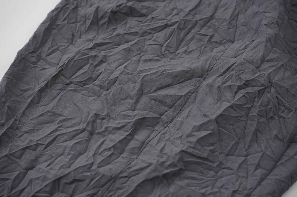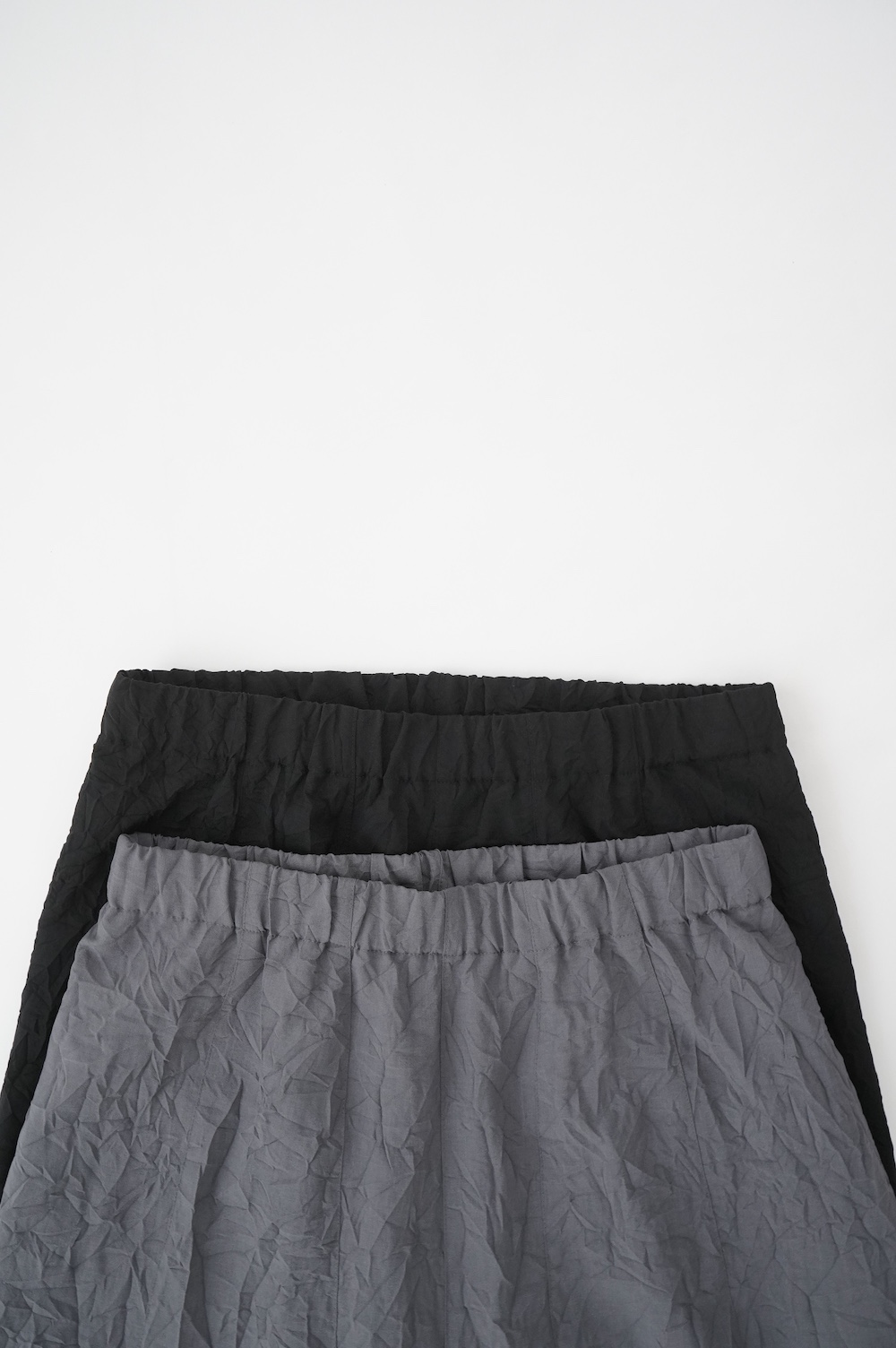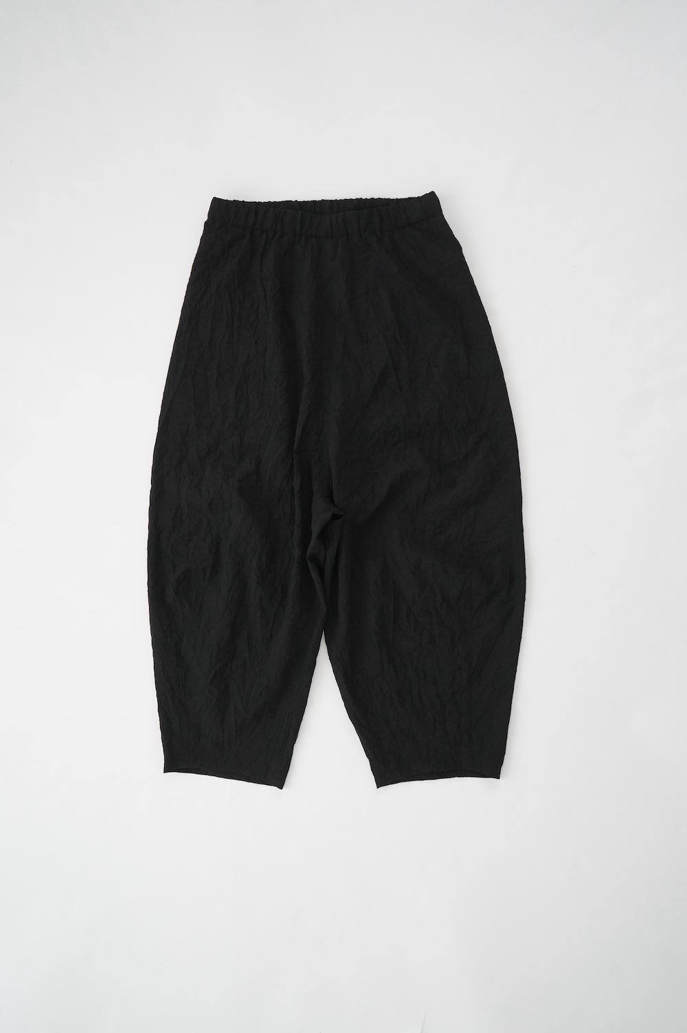 オネットのパンツ。シワ加工の入ったポリエステル生地を使用。とても軽く、サラサラとした肌触りで夏まで涼しく穿けそうな素材感です。お洗濯もご自宅で可能な扱いやすい素材です。