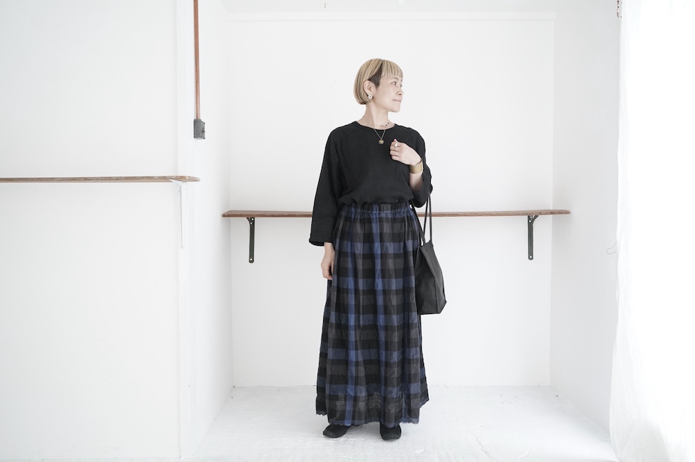 レーヨンによるとろみと清涼感のあるチェック柄は、派手すぎずトップスの合わせやすい、取り入れやすいチェック柄です。「普段は無地が中心。でも柄も取り入れてみたい」と言った方にはおすすめのチェックスカートです。