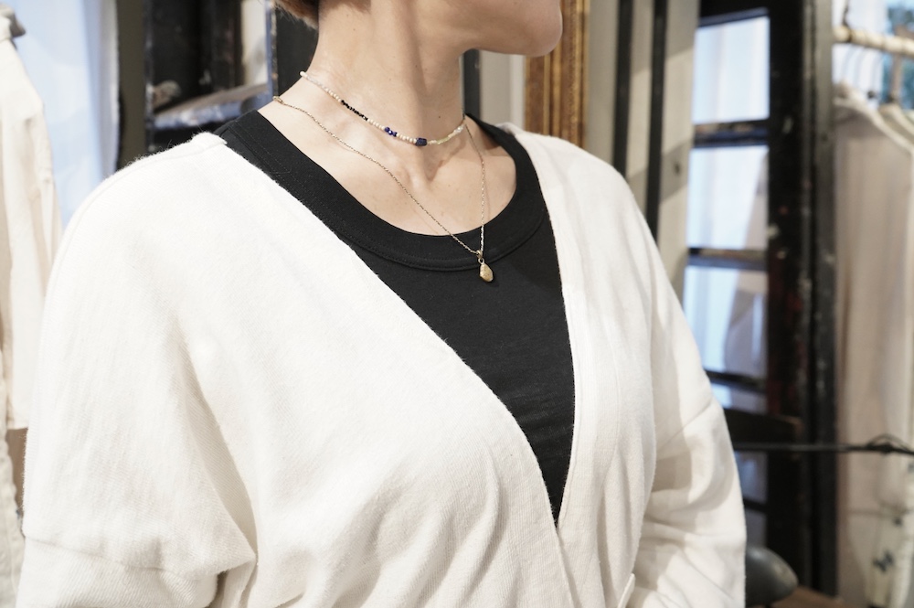 奈々さんが自分用に購入したのはブラックです。まだ撮影で少し着ただけですが、感触はやっぱり最高みたい。これからお洗濯を繰り返してどうなるか?僕は女性ならではなの絶妙な感覚はわかりませんが、この生地がいい生地だっていうことはわかります。これからの変化もしっかり見ていきたいと思います。