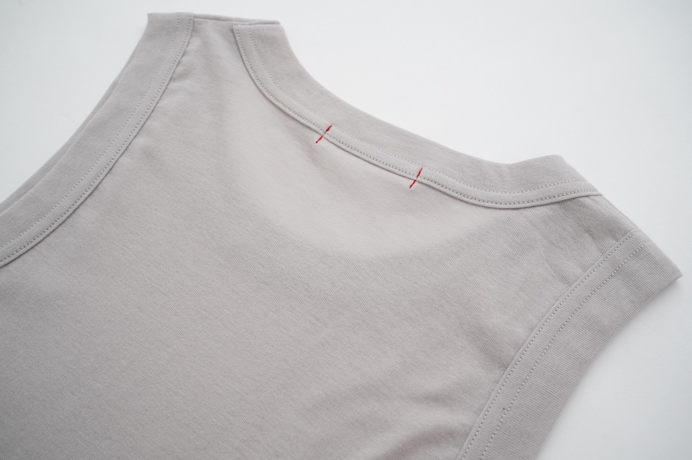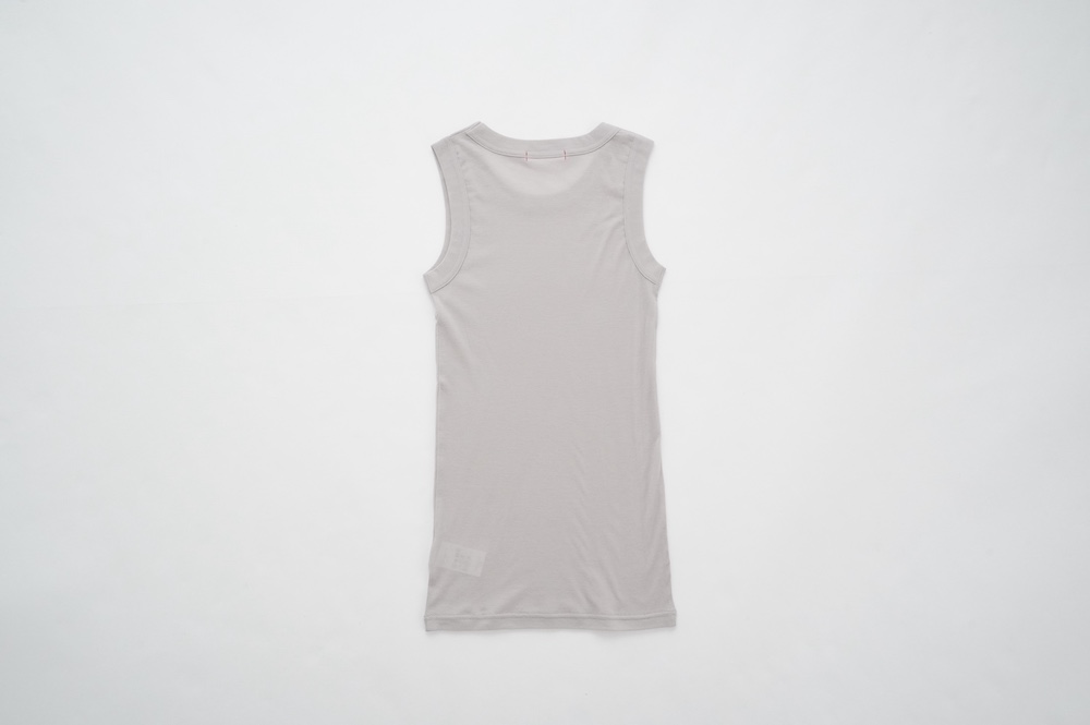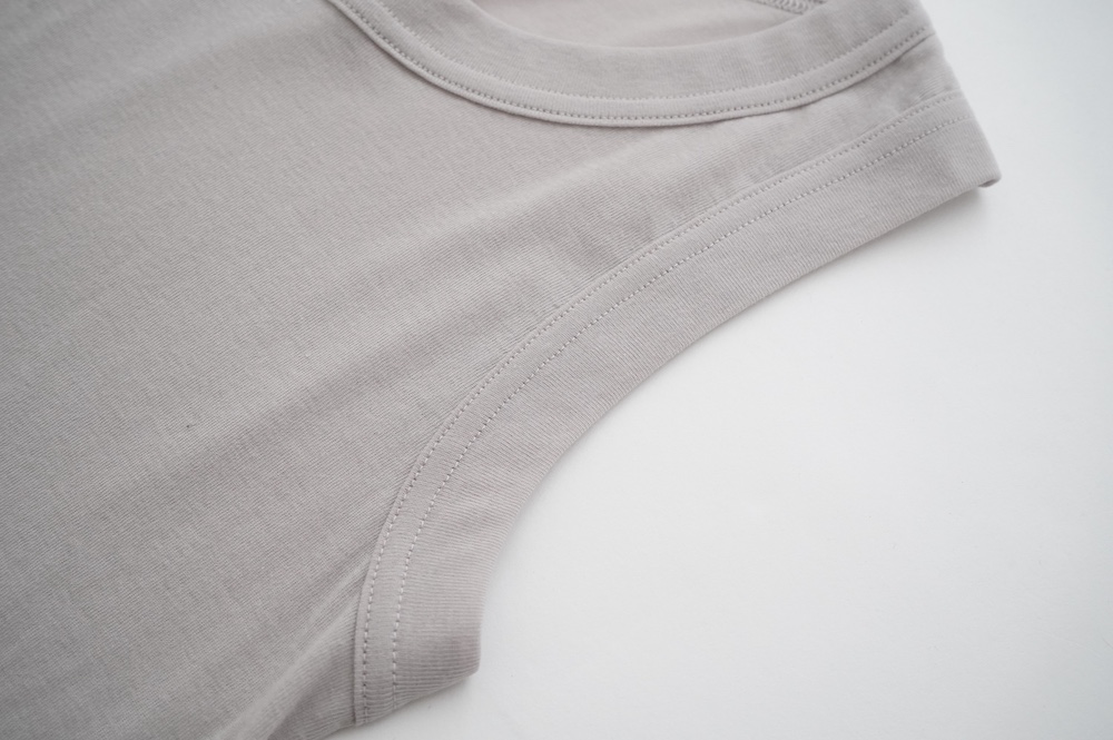 上質なコットン素材のタンクトップ。柔らかさとしなやかさのある生地は薄手で、まるで皮膚を纏うような着心地。ネックは首元を綺麗に見せてくれる絶妙な開き。そしてアームホールはしっかりと脇をホールドしてくれる形になっています。透け感のある素材ですが、あえて一枚で着るのもありですし、見えても良いインナーとしてもとても重宝するタンクトップです。