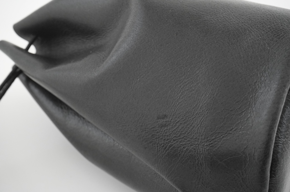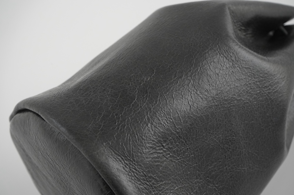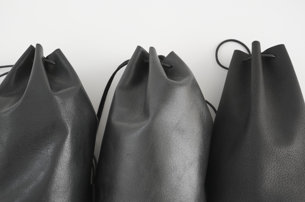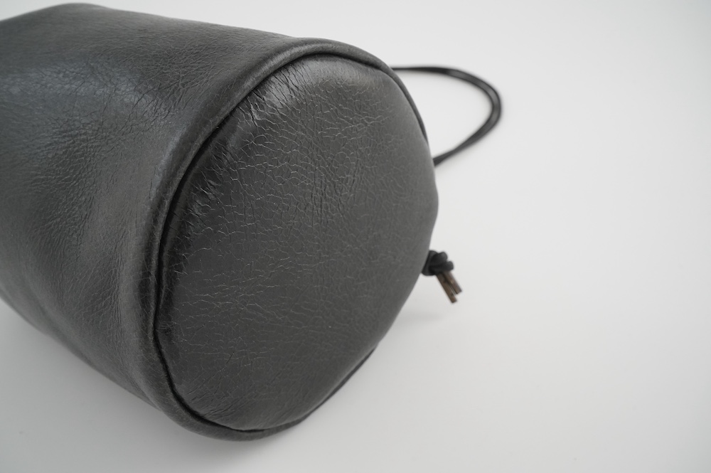 ワックス加工で程よい艶感があり、経年での見た目の変化はほとんどありません。個人的にお気に入りの素材で、以前にも別注で使用しており、現在自分が使っているバッグもこの素材です。残念ながらタンナーさんで廃盤となっており、おそらく今回が最後の販売となりそうです。