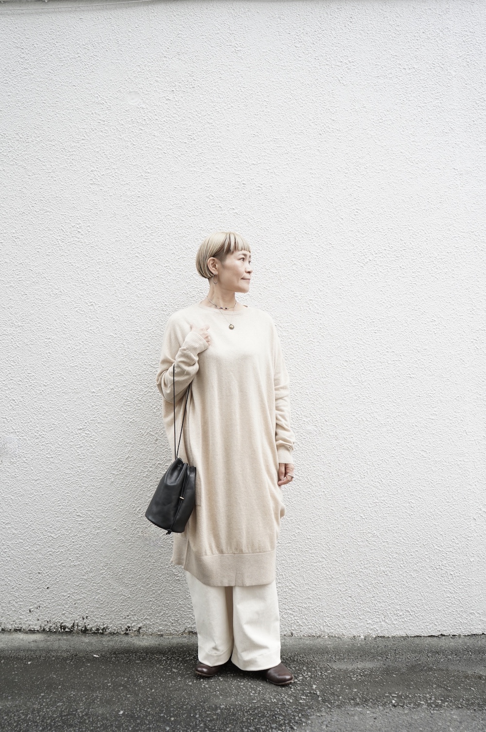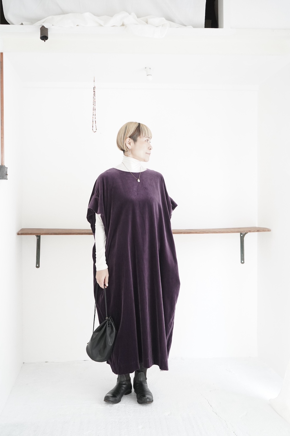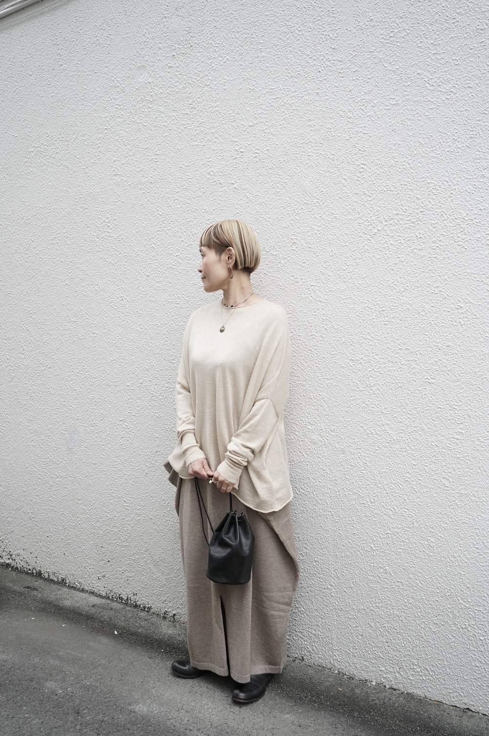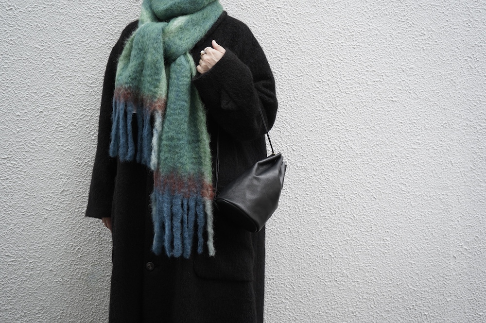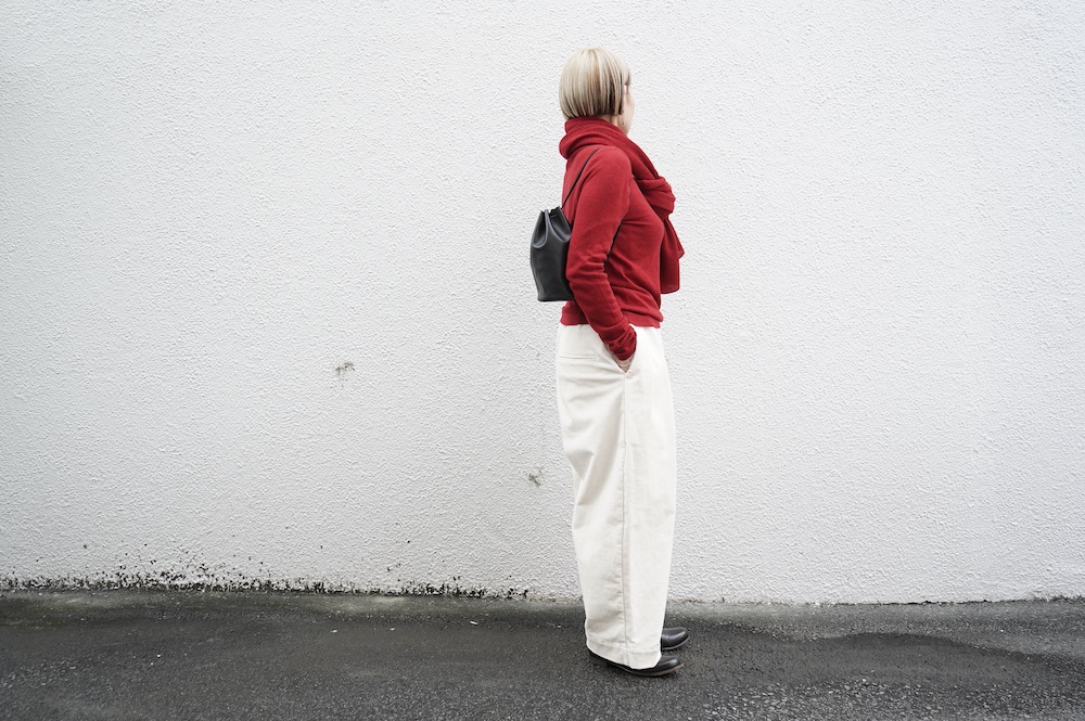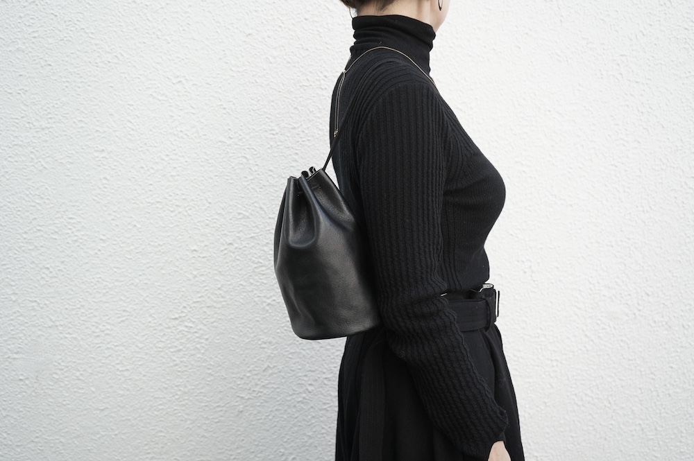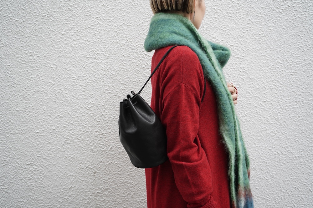 反対側の紐を引っ張ってちょっと長めのワンショルダーに変化します。こちらもインスタリール動画をぜひご参照ください。