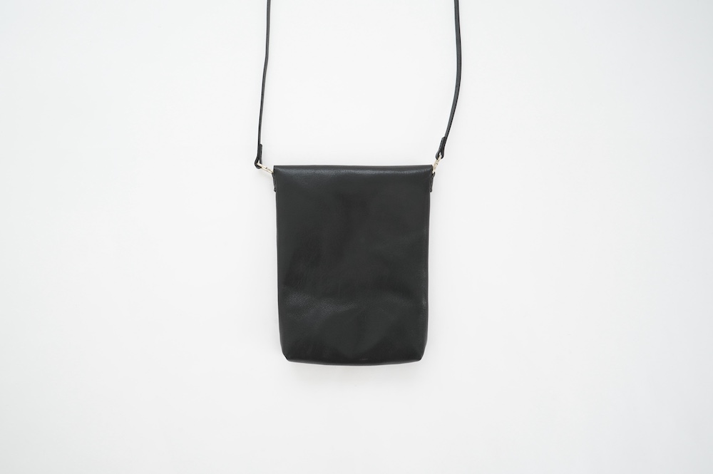深めの山形フラップはあえて留め具は付けず、シンプル極まりないデザインに。