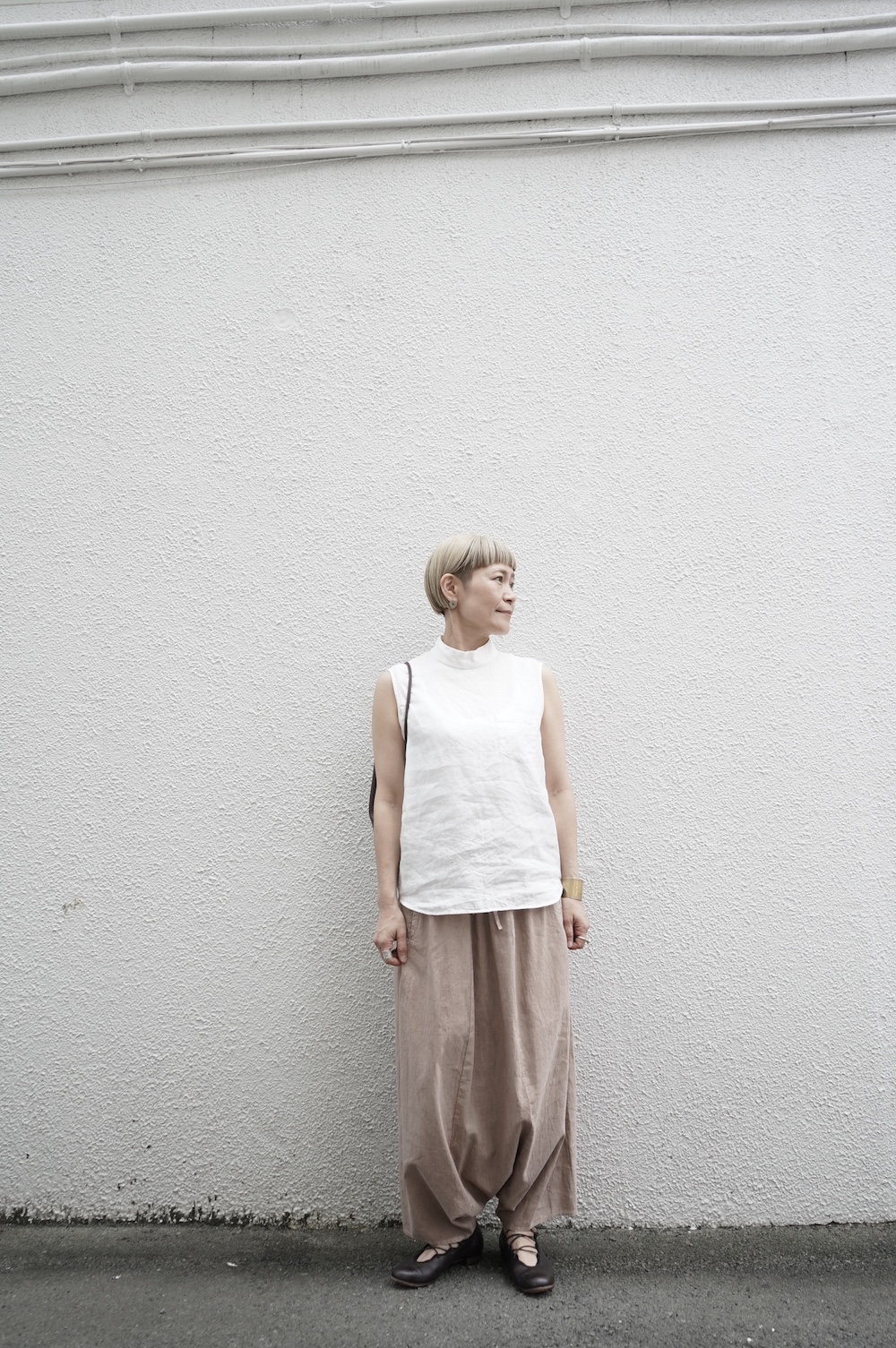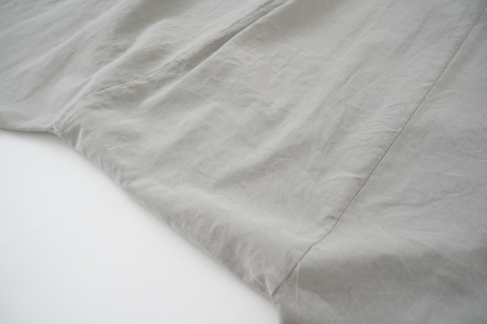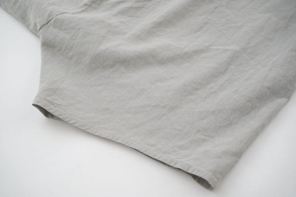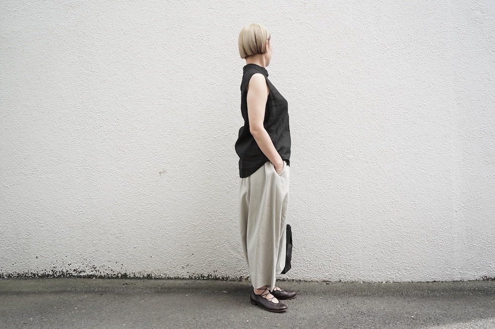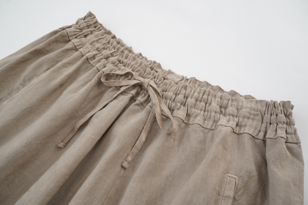 ”ファクトリー”のパンツ。パリッとハリ感のあるコットンリネン生地を使用。これからの季節に心地よいさらさらな手触りです。