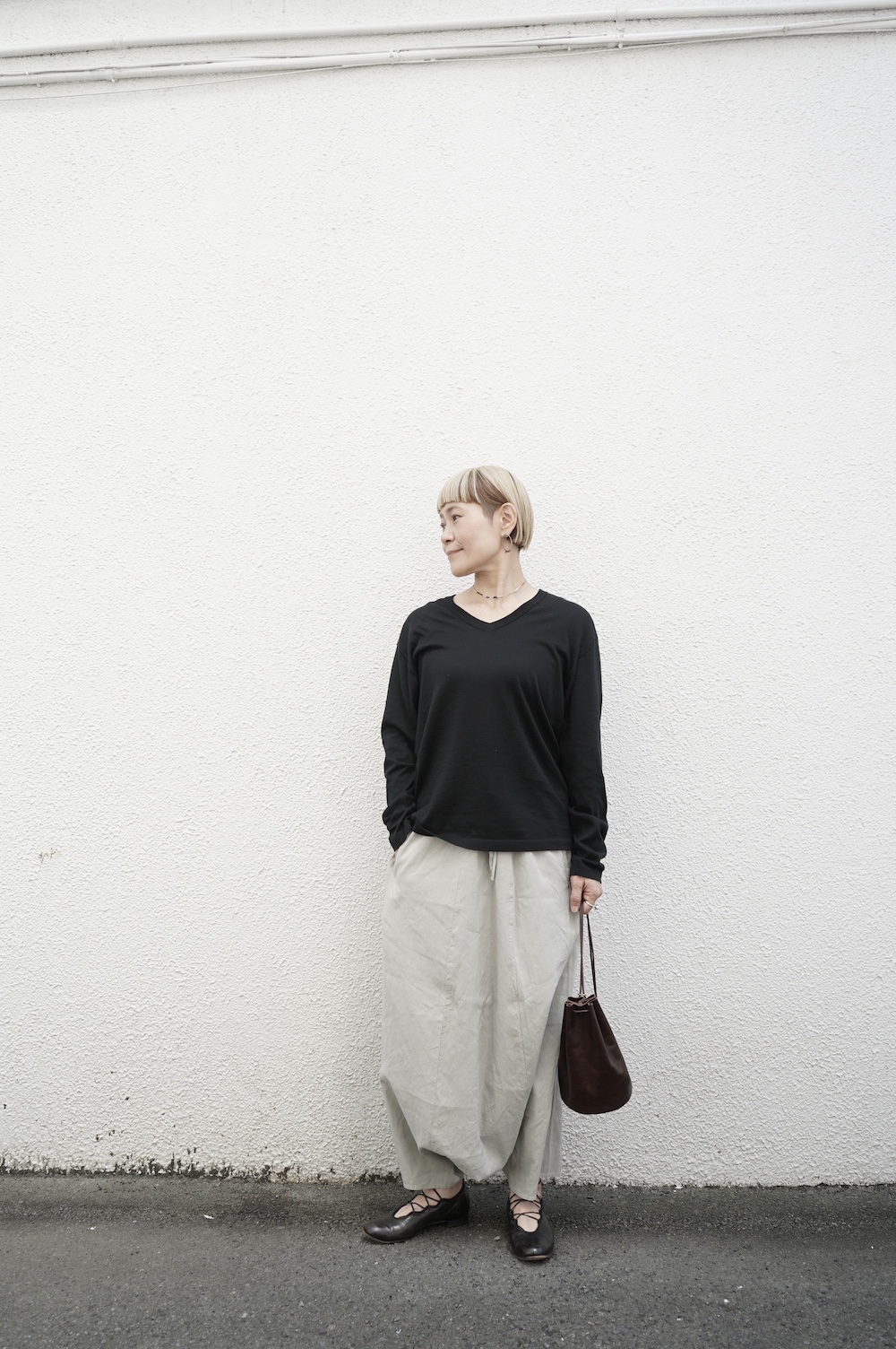 股下がほとんどないのが特徴の接しやすいサルエルかと思います。