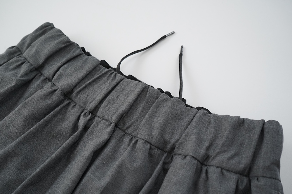 ウェストはゴムシャーリングで紐