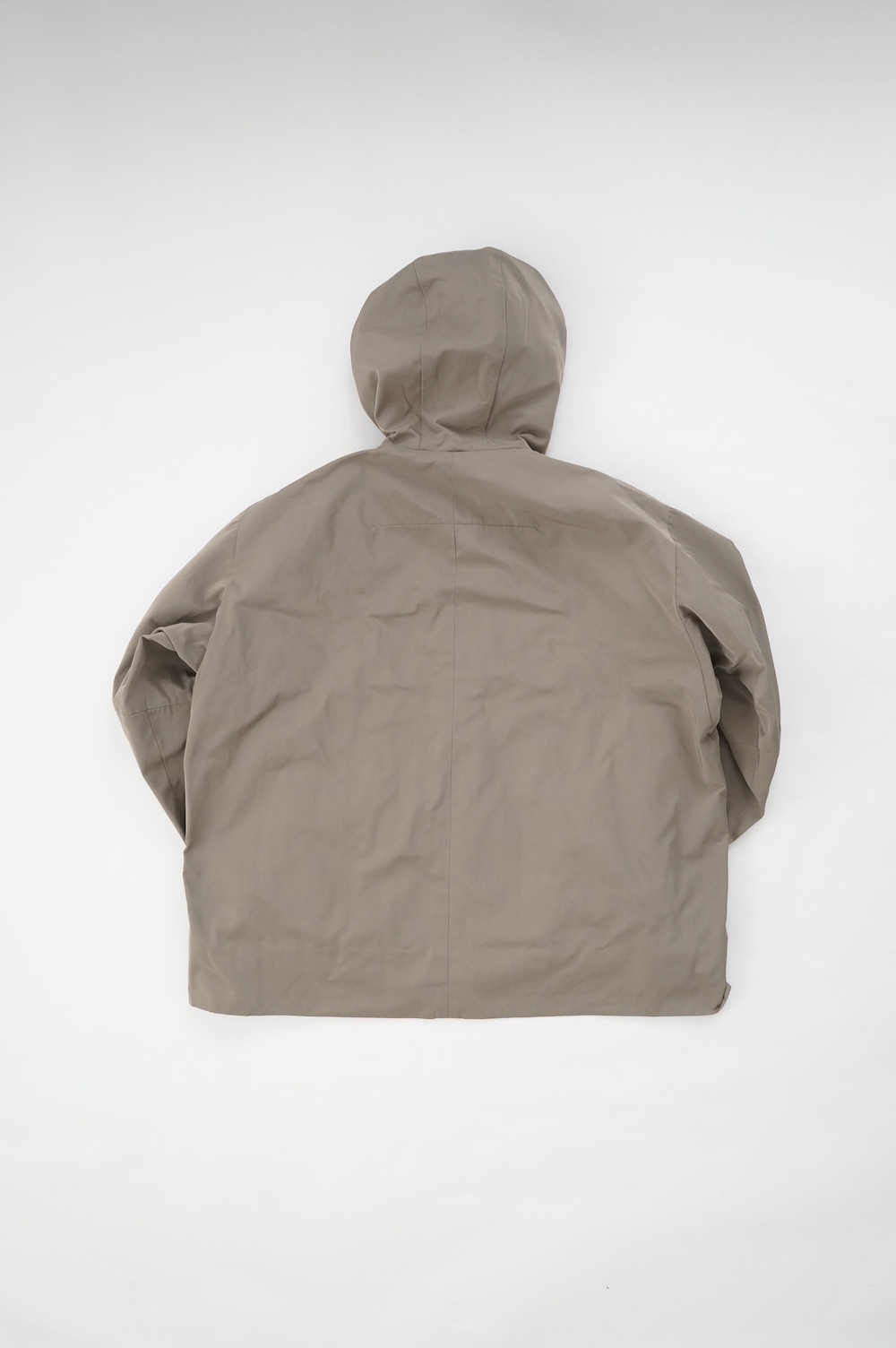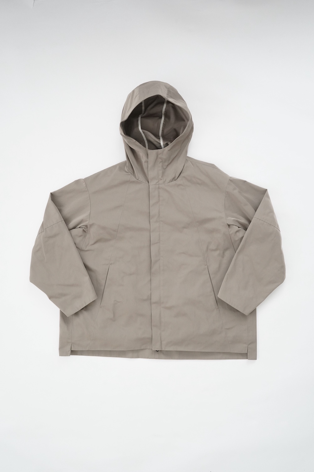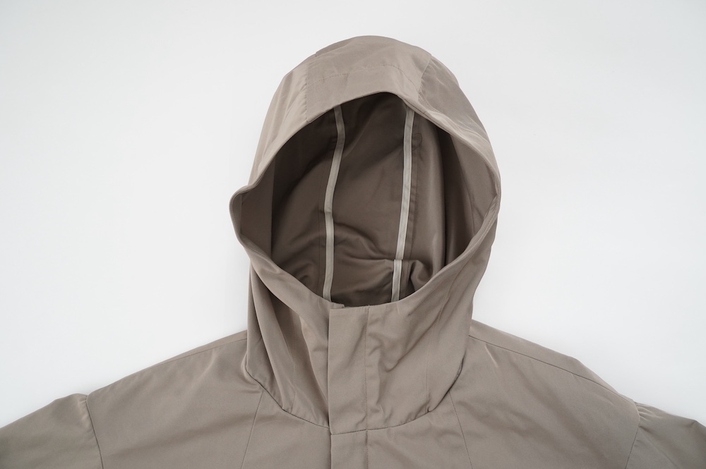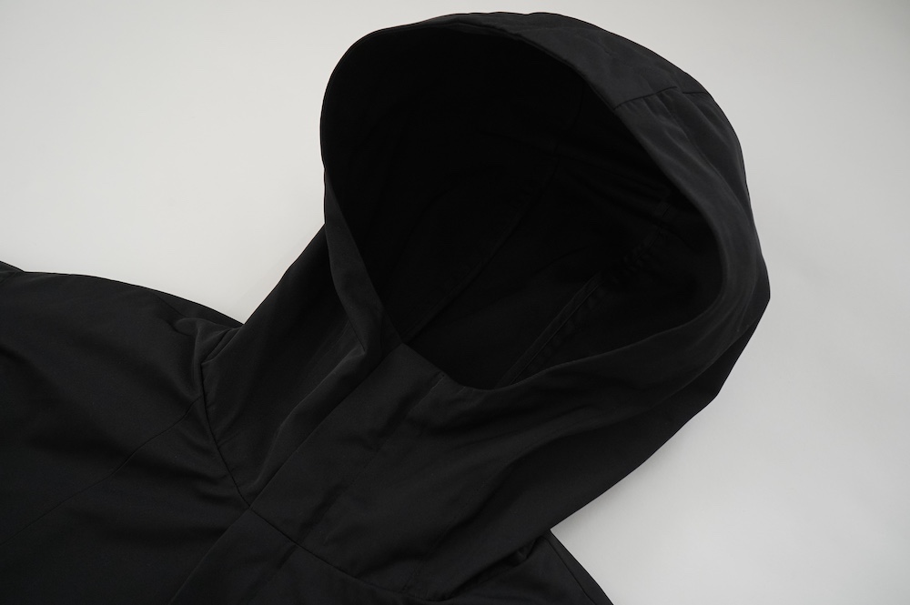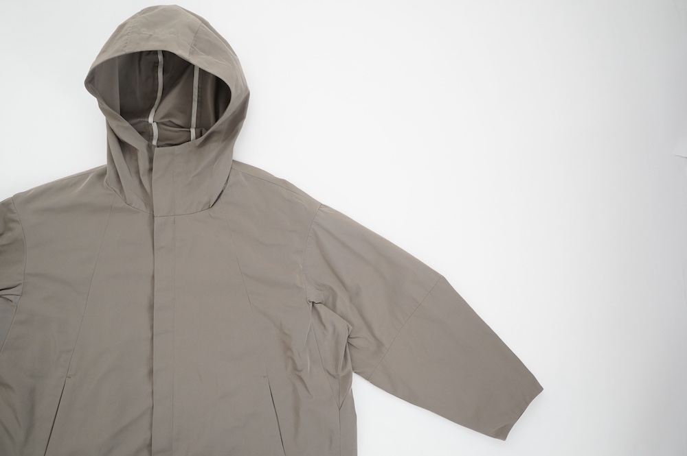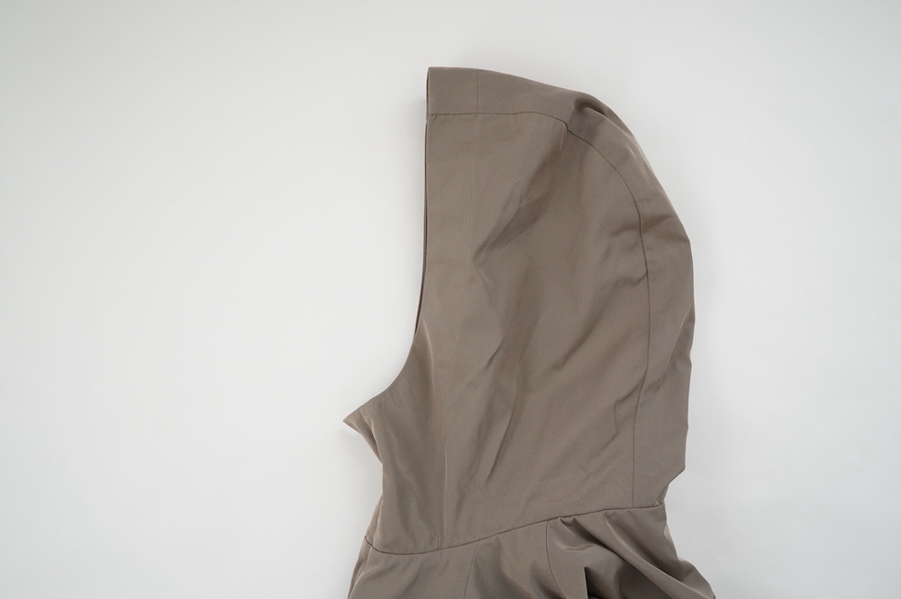 デザインは、フード付きの短い丈のブルゾン。前立てはファスナーで、前身頃の切り替え位置にシームポケットが施されています。身幅はゆとりがあり、肩周りもドロップショルダーのように動きやすいパターンになっています。スポーティーすぎないシンプルなデザインで羽織りやすく、季節も春先や秋口にもぴったりです。長い季節で重宝するフードブルゾンです。