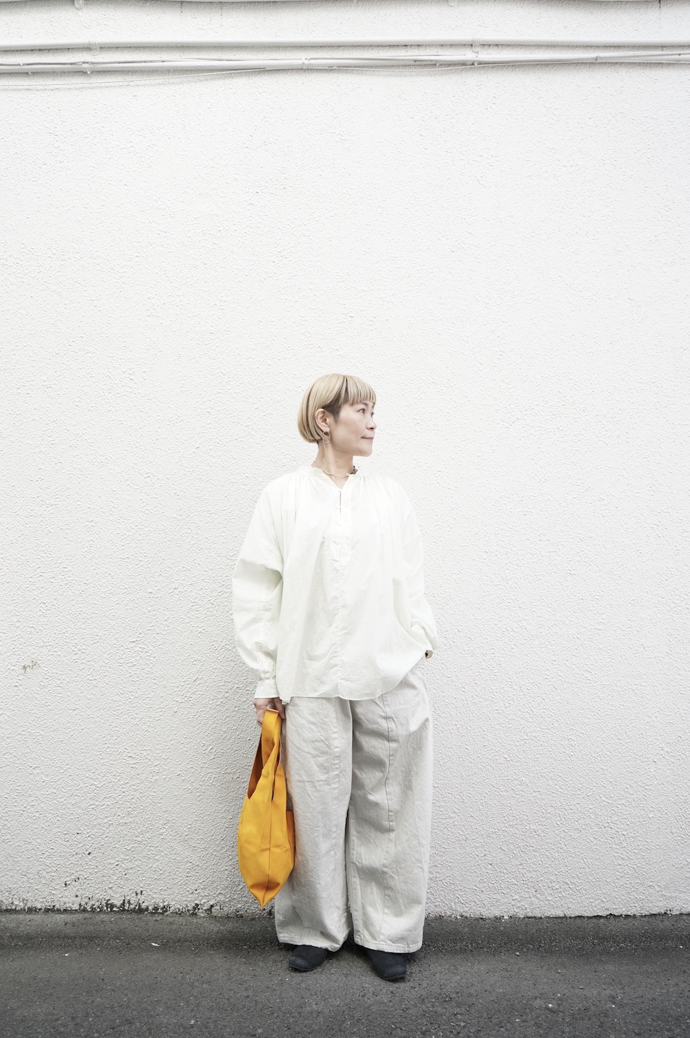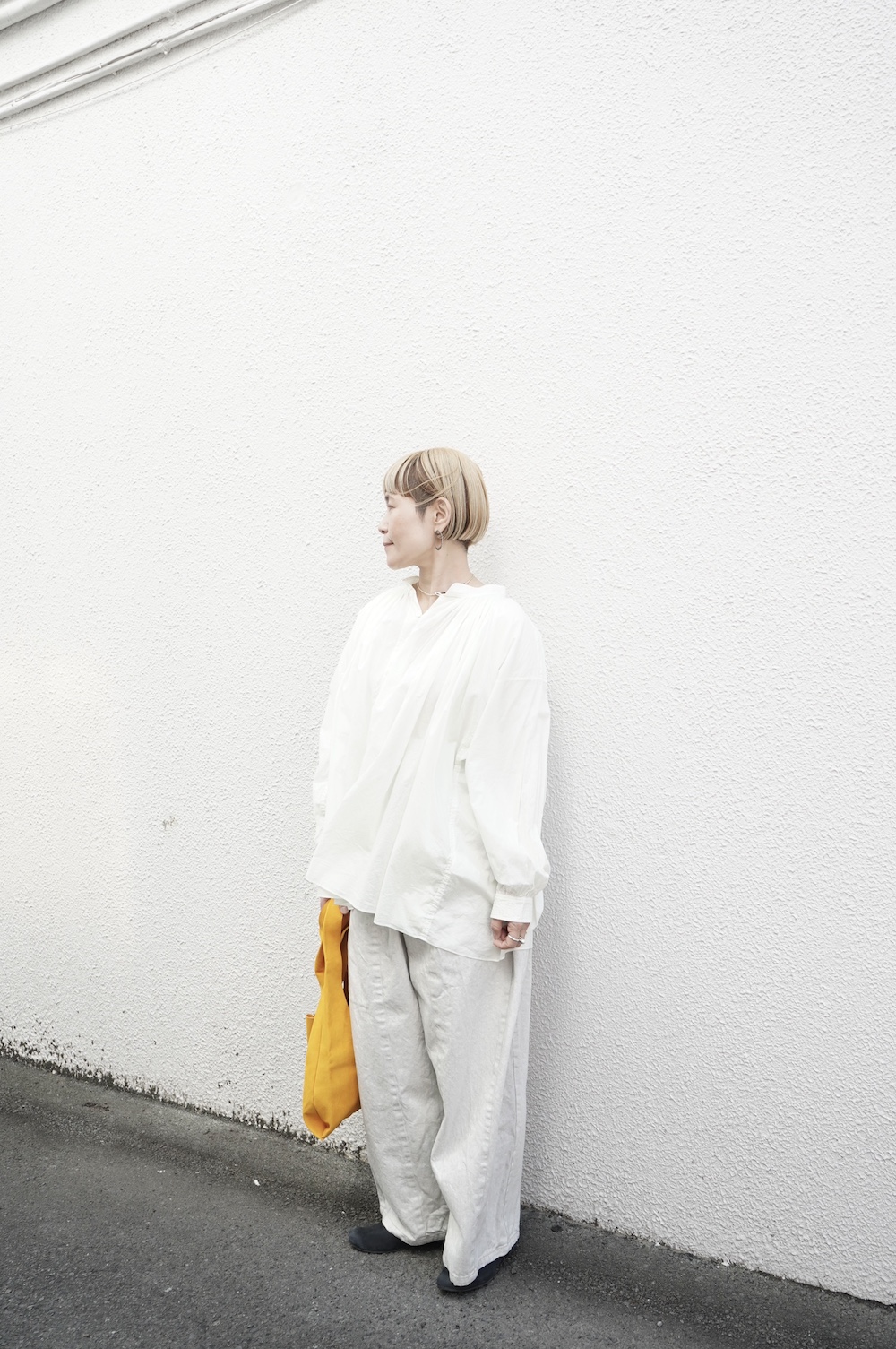 Honneteのシワシワワイドパンツに合わせて