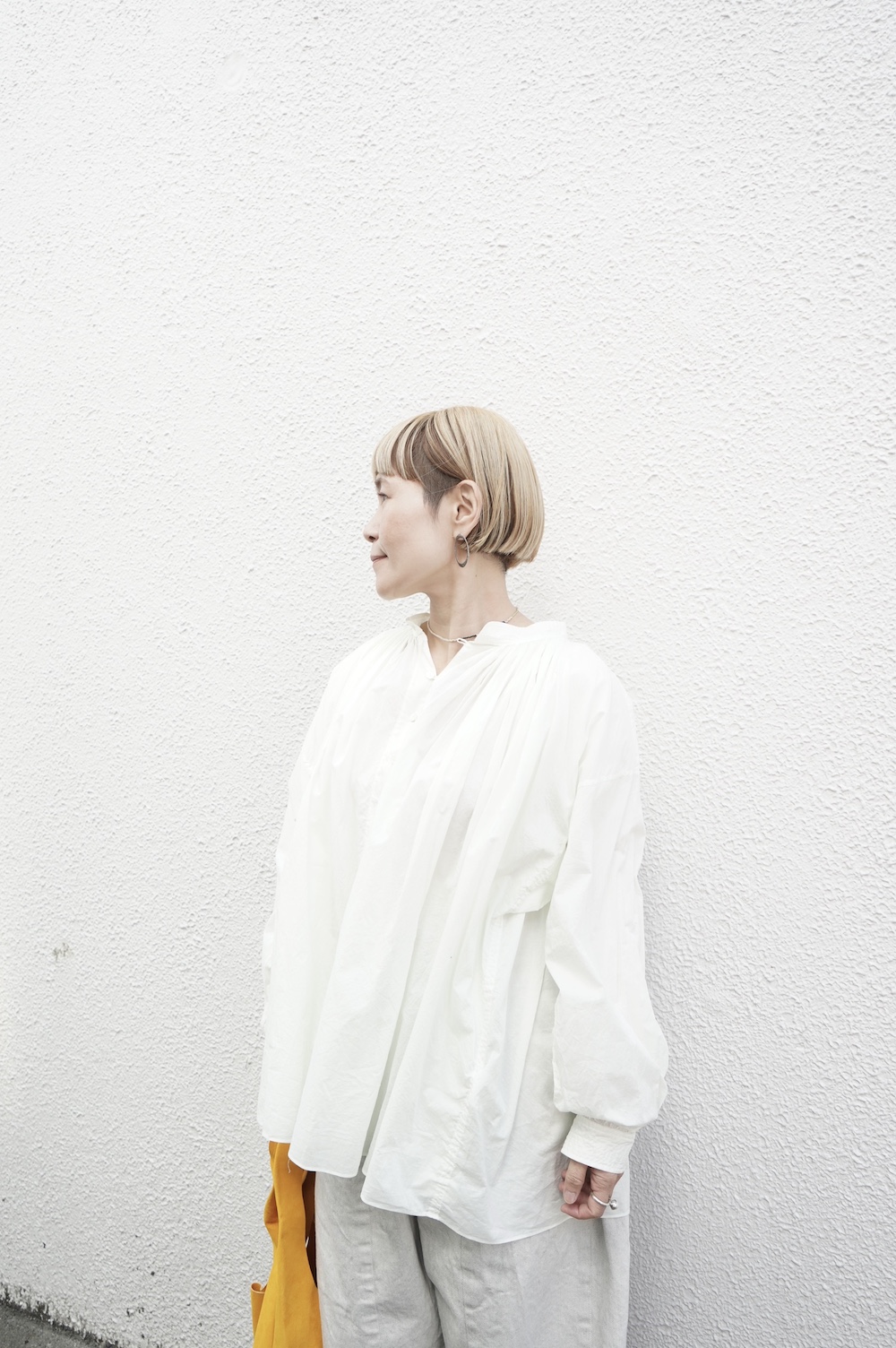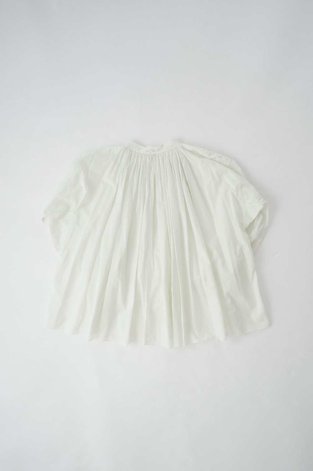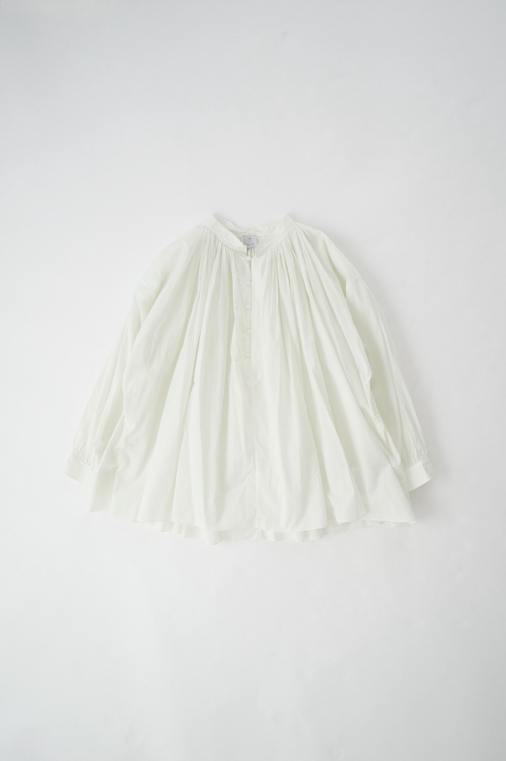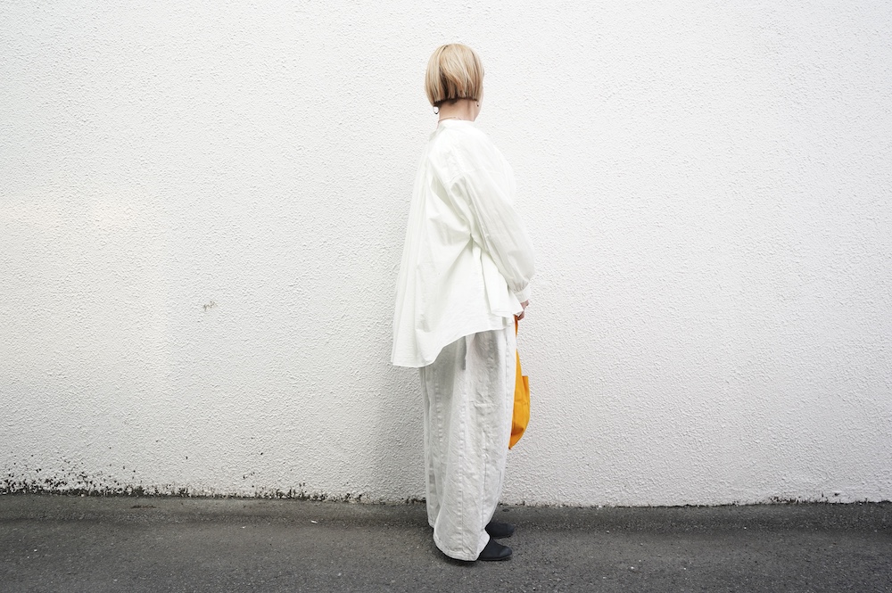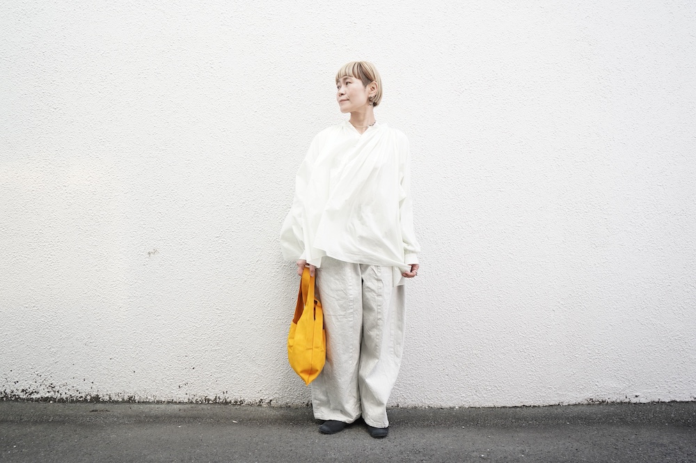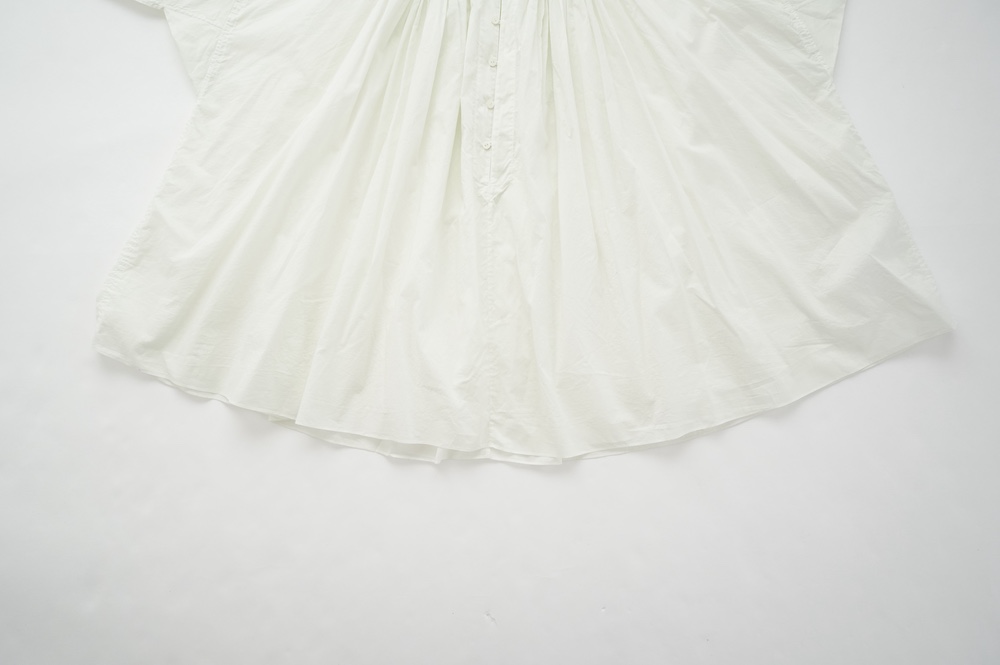 デザインはエッシュペーの繊細な縫製の指標になった定番シリーズ。19世紀の教会のスモックを基に現代でも着やすく生活に馴染むように設計されたブラウスです。たっぷりとした身幅にネック周りや袖、背中の細やかなギャザーは生地の上質さを際立たせてくれます。ふんわりとしたシルエットですが、生地感も相まって甘くなりすぎない。思わずクルッと回りたくなってしまう日常がランクアップするような気分の上がるブラウスです。