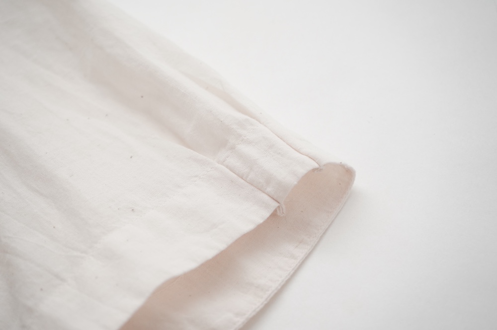"カディ アンド コー"のブラウス。細番手のライトカディーコットンは、まさしくインドカディーの最高峰。手で糸を紬ぎ、手で機織りしたとは思えないきれいな仕上がりです。上質なカディーコットンは、洗うほどにふくらみを増し、肌触りが良くなります。