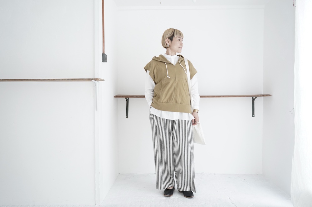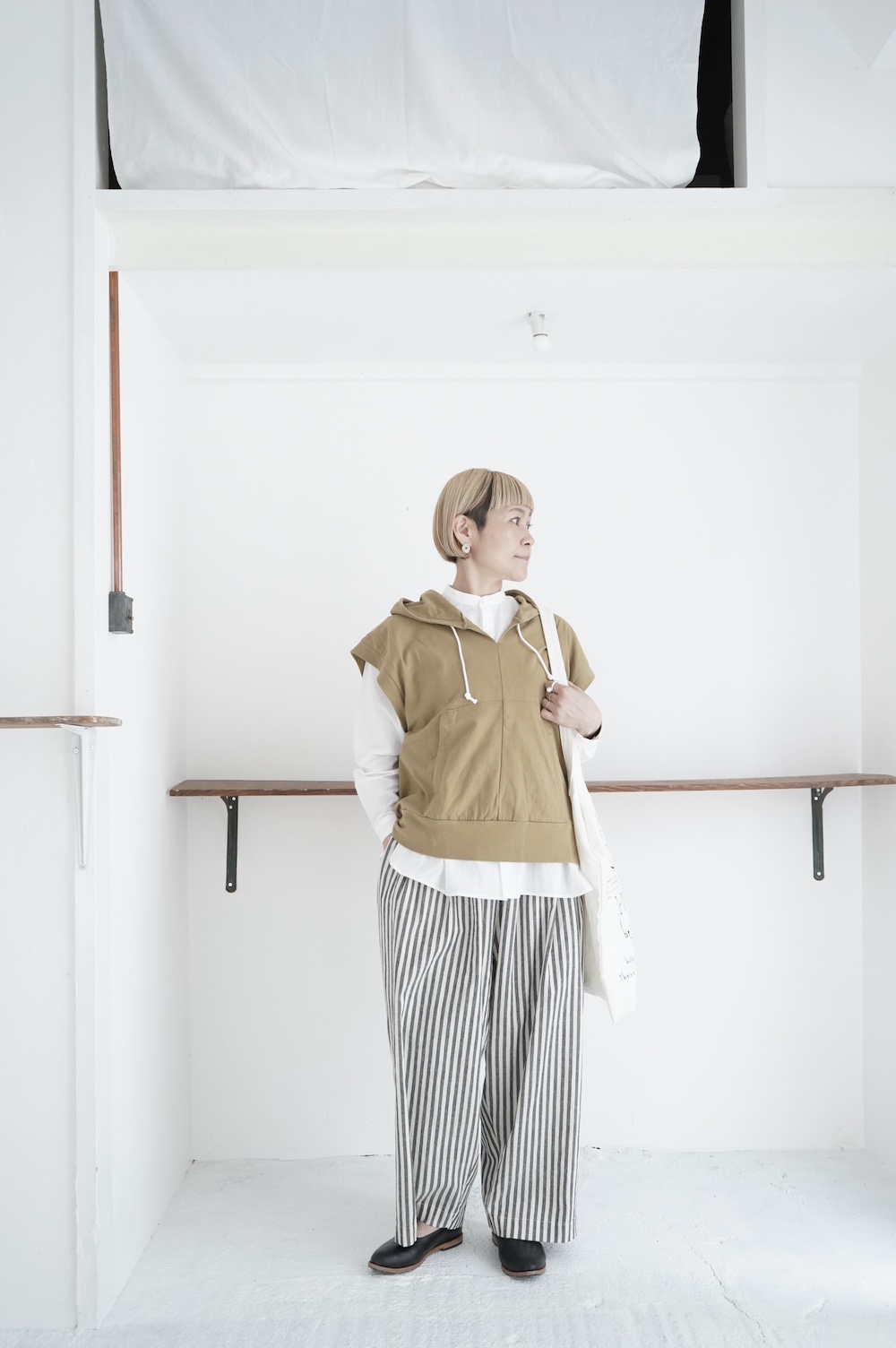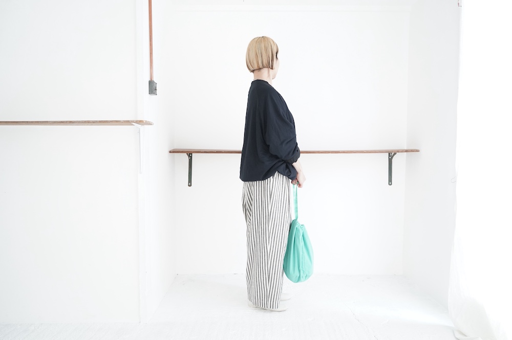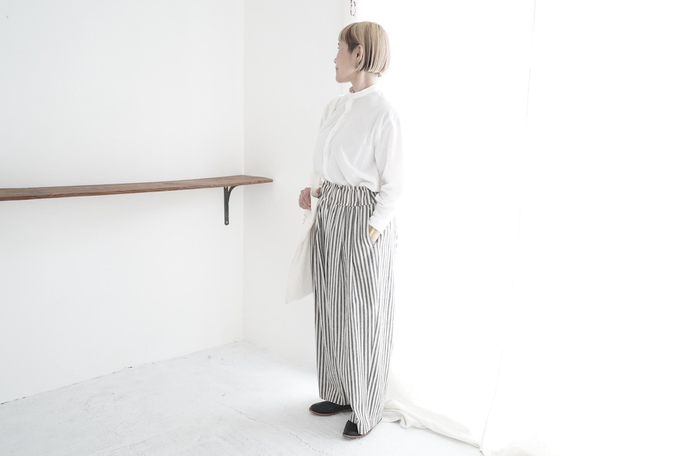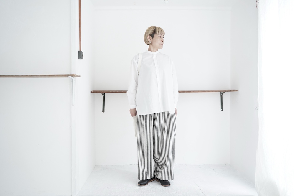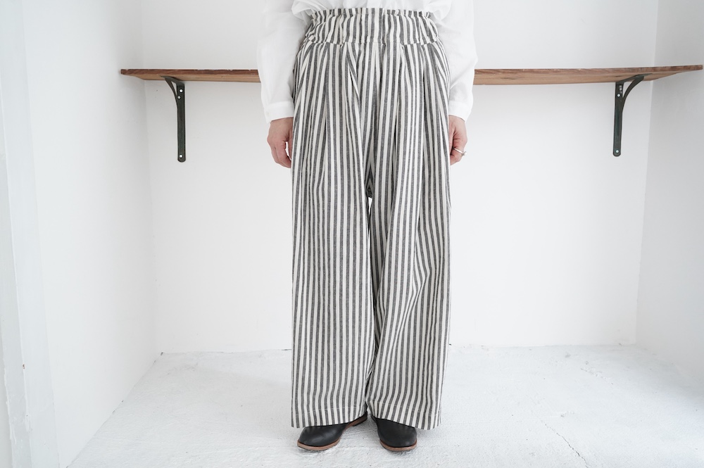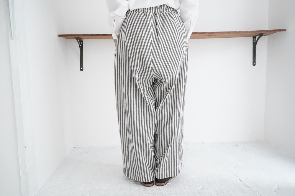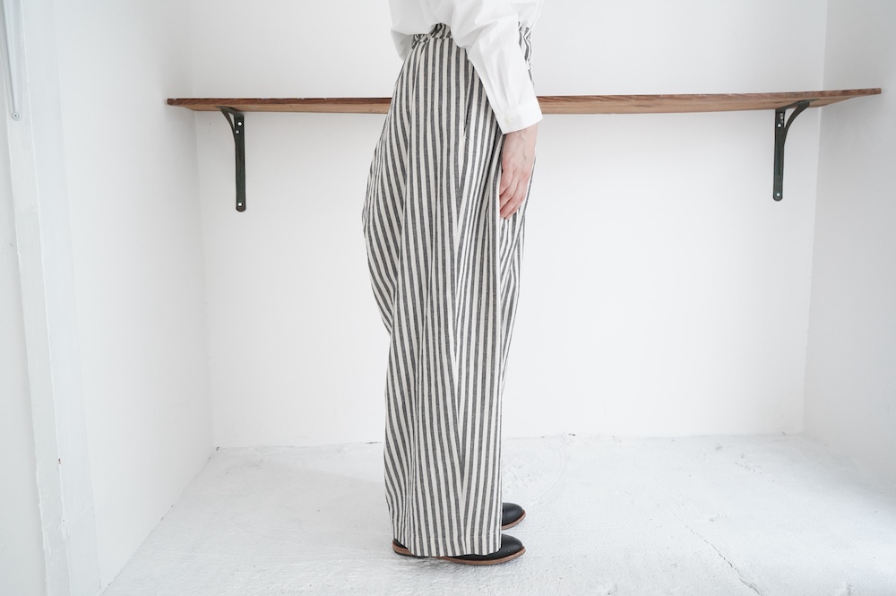 デザインは同ブランドらしいワイドなフロント3タックでボリュームがあり、ややテーパードしたシルエットが素敵なワイドパンツです。トップスの合わせ次第で綺麗めにもカジュアルにも使いやすいフルレングスのエブリデーパンツになりそうです。
